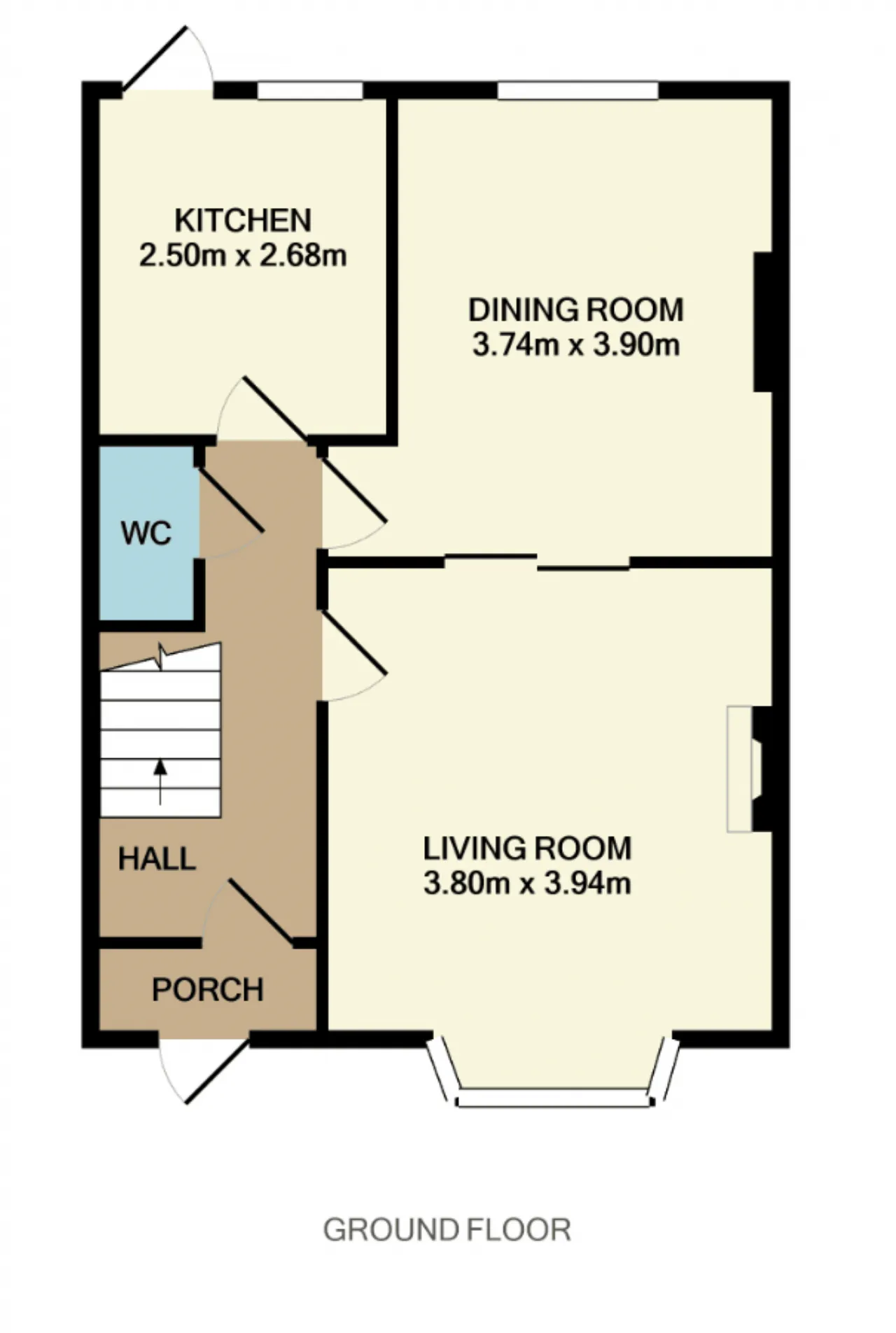 Upstairs there are two good double bedrooms, the one to the front has a feature bay window and a nice bright aspect. The second double is to the rear with a lovely view to the church steeple. There is also single bedroom to the front and the main bathroom with separate wc completes the accommodation.