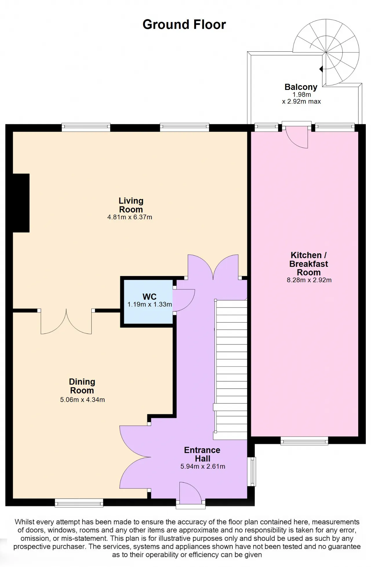Kitchen/Breakfast Room 8.28m x 2.92m original pine floor, floor and wall units with integrated appliances including, dishwasher, fridge / freezer, sink unit, electric oven, 2 ring hob, Stanley range cooker, extractor fan, attic access to large storage space, patio door leading to private balcony.
