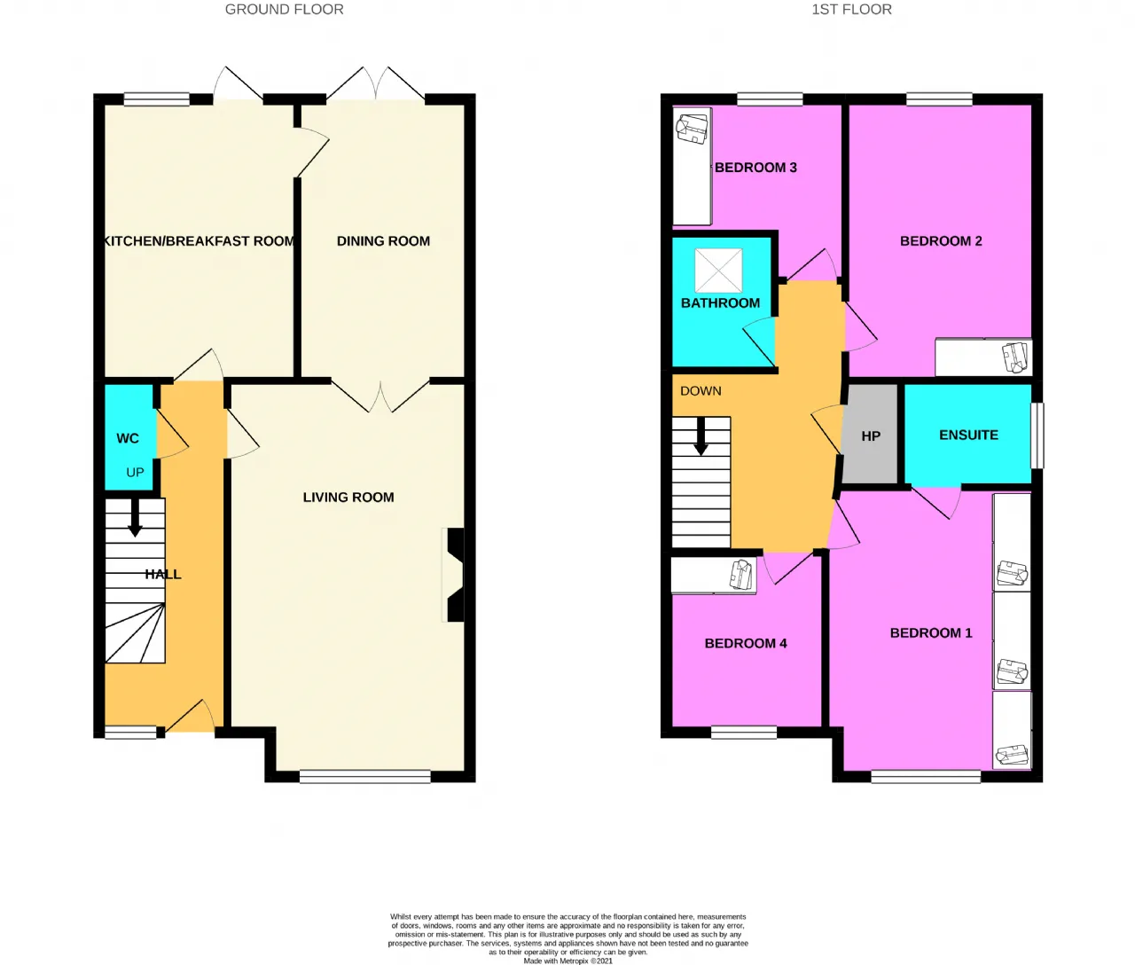 Ensuite 1.78m x 2.08m Fully tiled walls and floor complete with corner bath and shower fittings, wash hand basin and wc