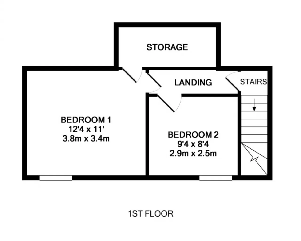 Bedroom 1 3.77m x 3.35m Large double bedroom to the front with carpet flooring, wall mounted mirror and access to large walk-in storage space.