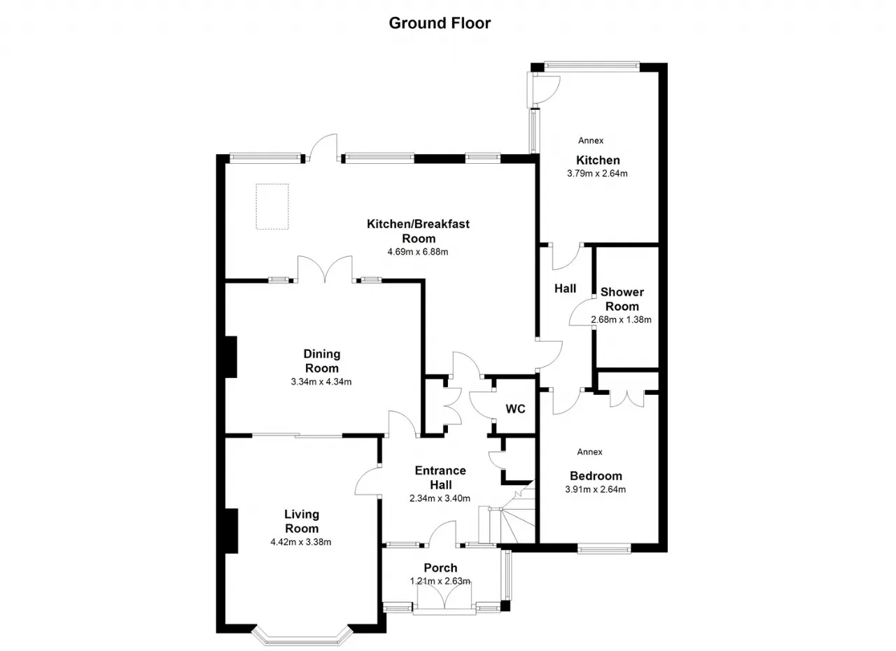 Shower Room Wet room style with extractor fan, non-slip tiling, mirror vanity, shower, wash hand basin and w.c.