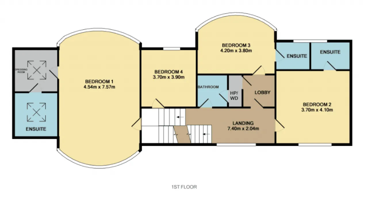 Bedroom 1 4.54m x 7.57m stunning main bedroom with fine ceiling cornicing and ceiling rose, marble fireplace and full-length window overlooking rear garden. Door to dressing room with built in wardrobes and door to bathroom en-suite.