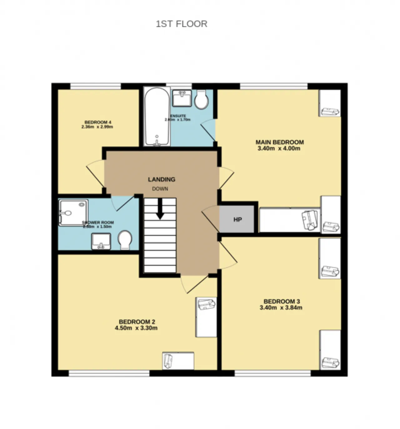 Landing 3.4m x 2m Access hatch to attic and hot-press.