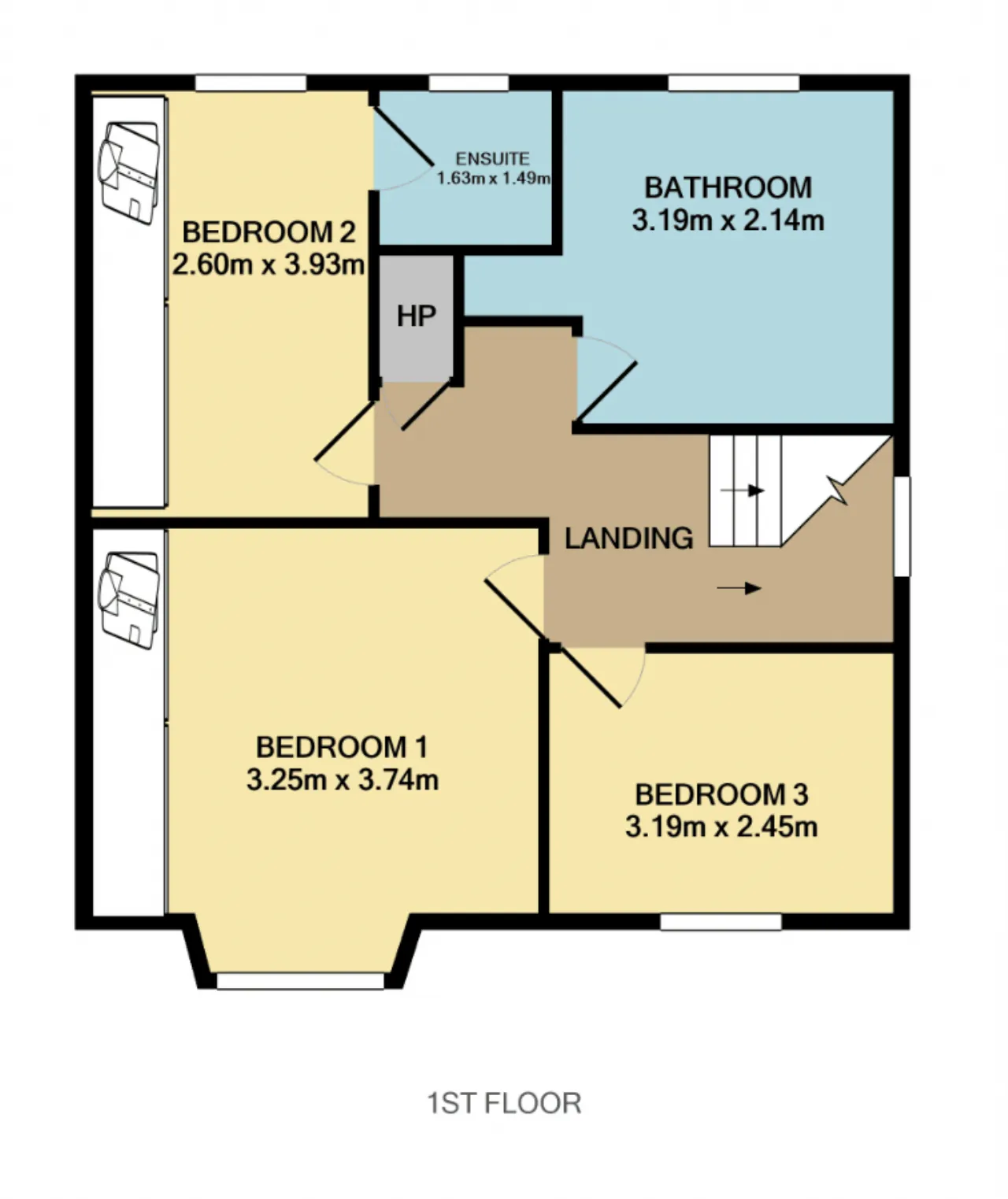 Bedroom 3 3.19m x 2.45m Single bedroom to the front with timber floor