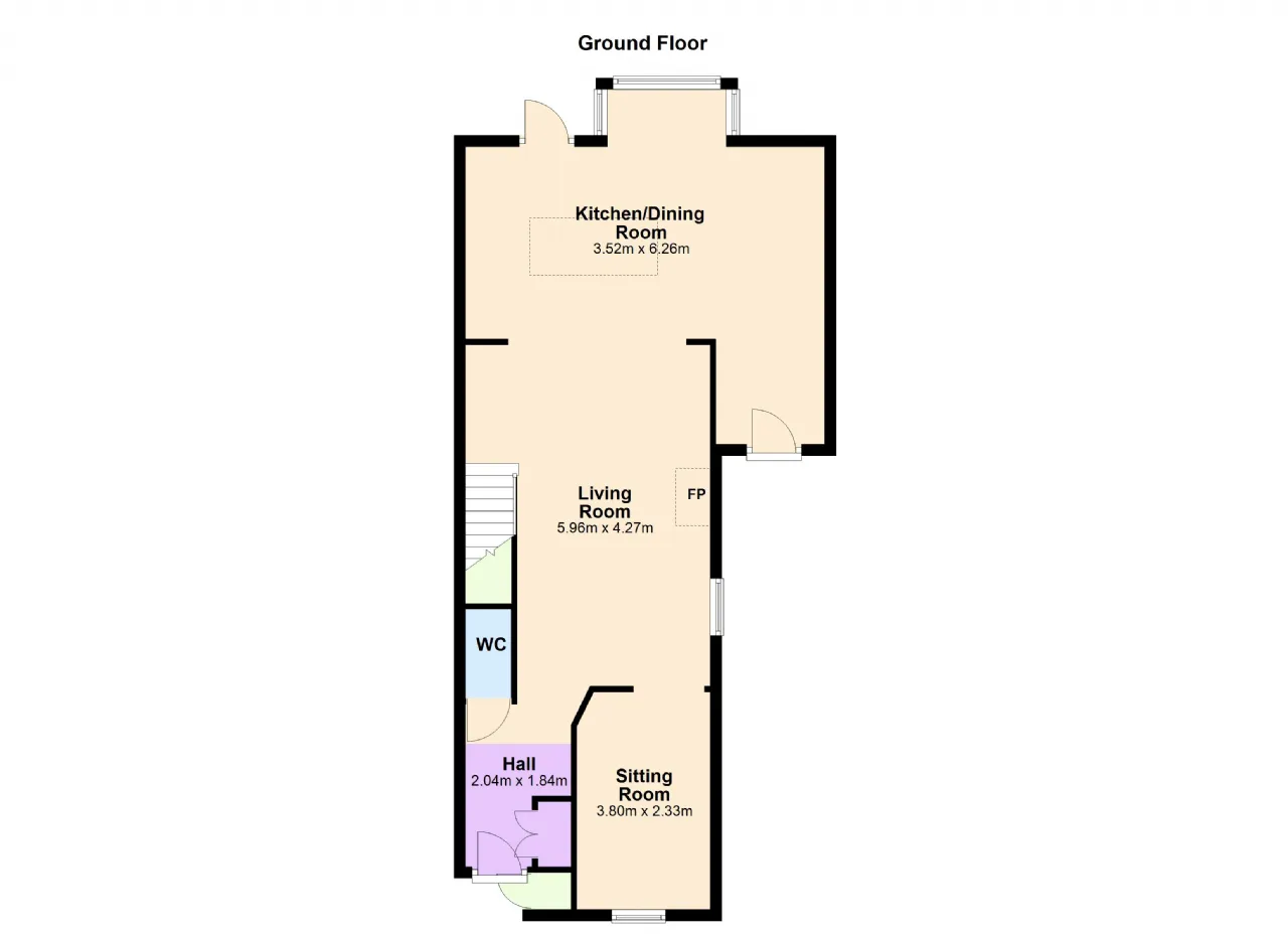 Bedroom 2 3.74m x 2.31m Single bedroom with carpet flooring, large window overlooking the back of house.