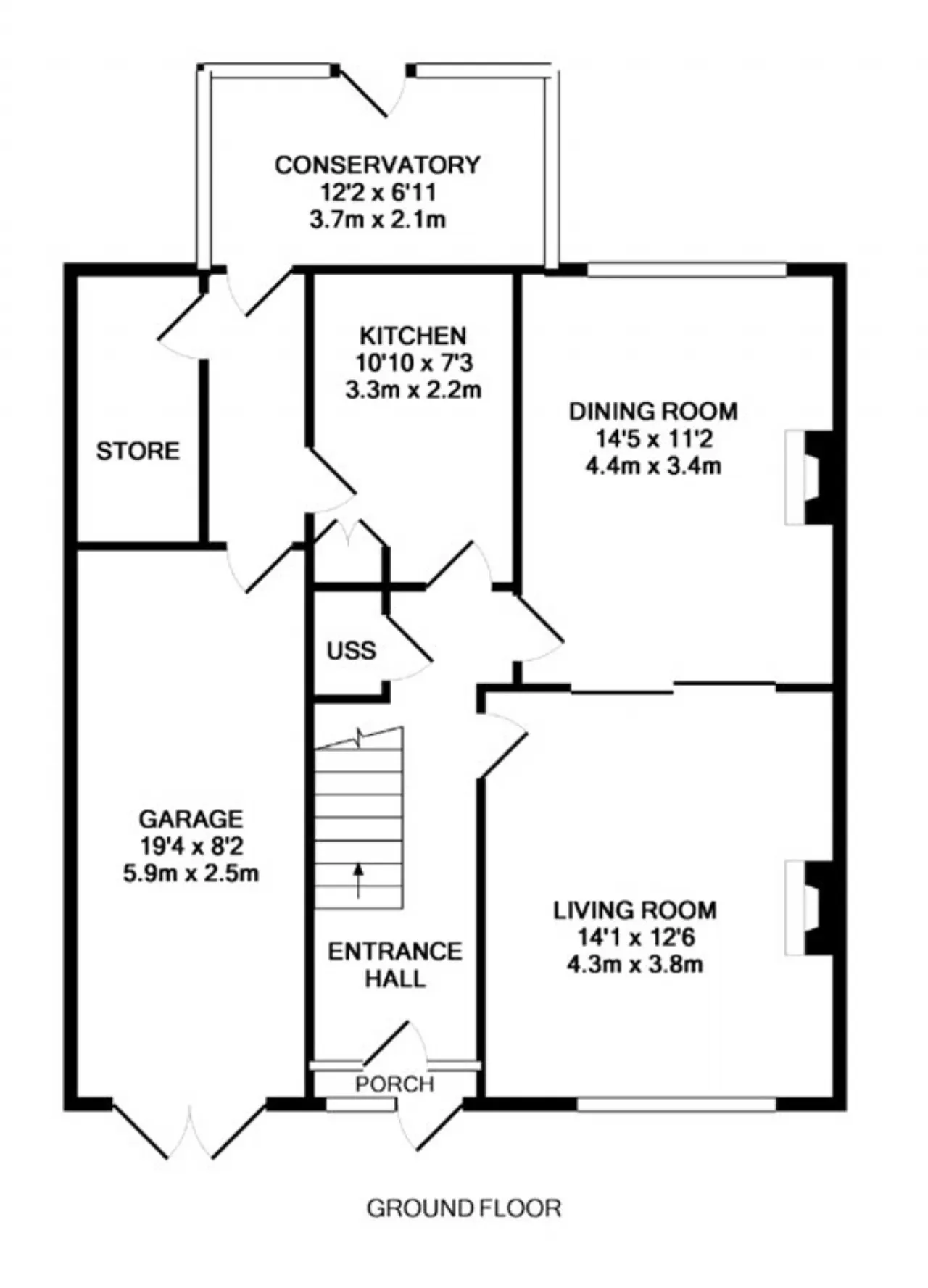 No.14 is a spacious three bedroom family home which is simply oozing with potential to be transformed into a bespoke family home. The accommodation comprises; porch, entrance hall with under stairs storage, interconnected reception rooms featuring original tiled fireplaces, kitchen, conservatory with access to the garden a large inner hall with both a spacious store room and large garage. On the first floor there are two good size double bedrooms, a single bedroom with built in storage and a family bathroom with separate w.c. The rear garden boasts a sunny southeasterly orientation, it is fully enclosed and is laid in lawn making it a secure space for children to play. To the front there is a large lawn area with off street parking and a spacious attached garage.