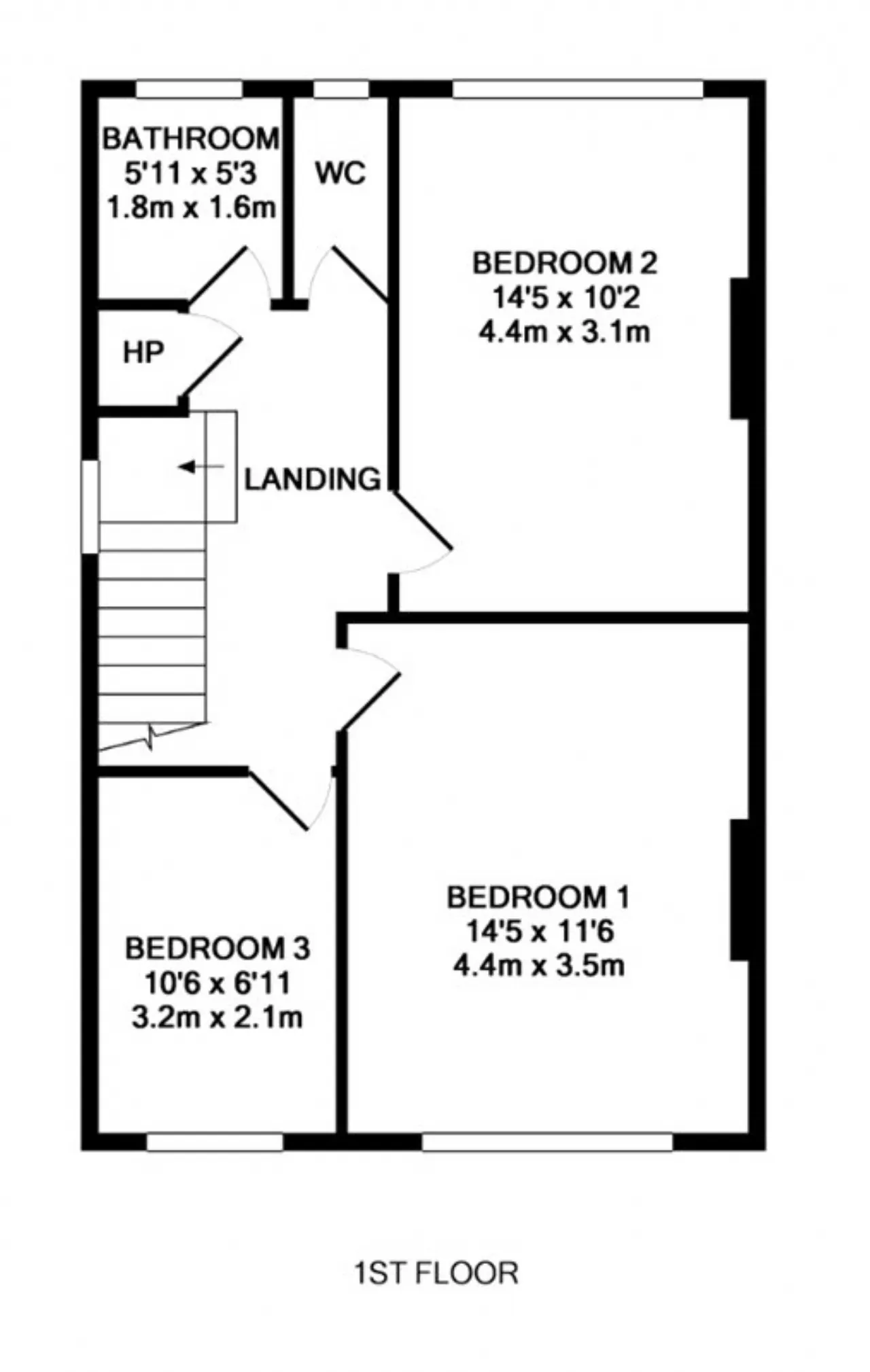 Bedroom 1 4.4m x 3.5m Spacious double bedroom to the front with picture rail.