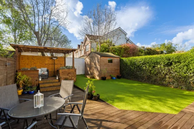 Outside there is a lovely private sunny south facing rear garden with large decking area providing ample space for outdoor dining. There are steps up to a raised pergola with multiple outdoor sockets - the perfect spot to relax and enjoy the evening sunshine. Outdoor garden lighting creates a wonderful evening ambience. A wooden Barna shed provides outdoor storage and there is an outside tap. To the front there is a gravelled driveway providing off-street parking.