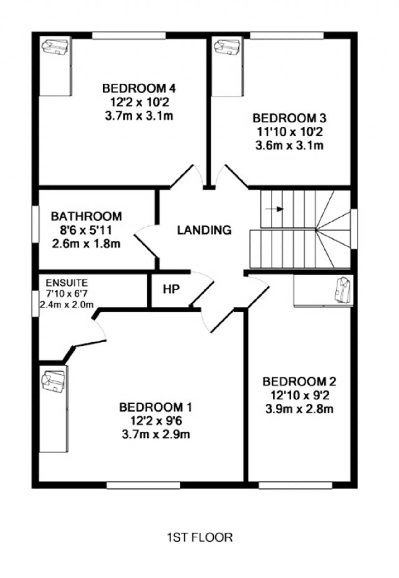 Bedroom 4 3.7m x 3.1m Double bedroom to the rear with wash hand basin, wall mounted mirror and built in wardrobes