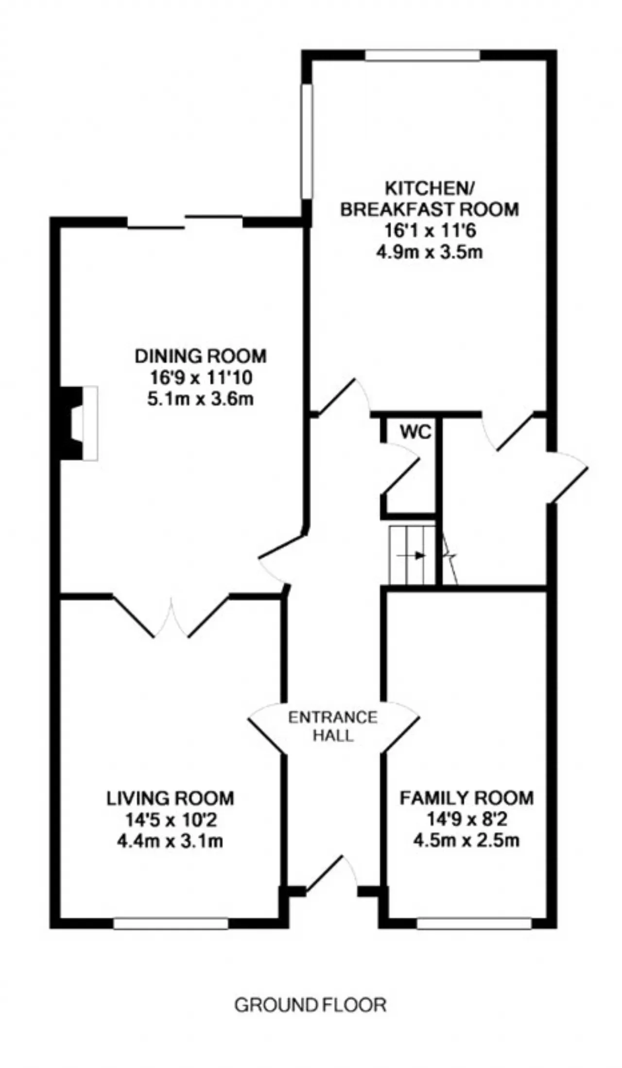 Family Room 4.5m x 2.5m Good size room with TV point and phone point overlooking the front garden.