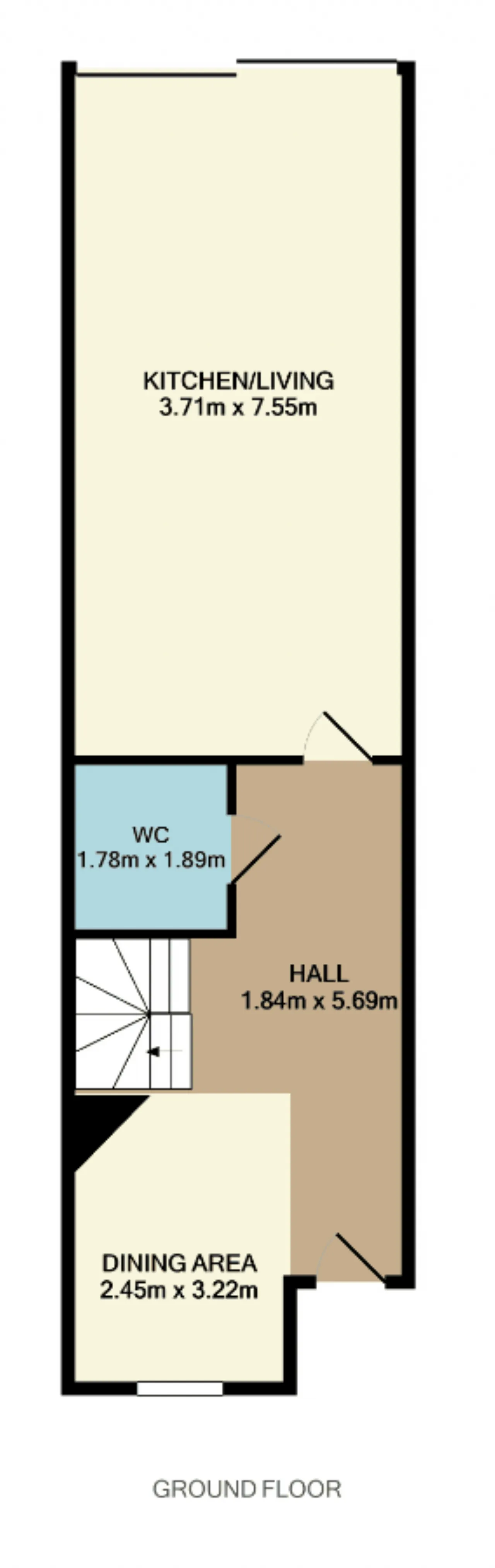 8 Rosemount Terrace is entered via a large open plan dining room with bespoke tiled flooring that continues throughout the ground level, a handcrafted black steel wall divides this room from the spacious hallway and off of this lies a guest WC with under stair storage. There is a newly fitted kitchen with quartz counters and a breakfast bar which opens onto a spacious living room over looking the south facing rear garden. On the first floor there are two double bedrooms and a newly fitted bathroom suite with shower and separate bath. On the 2nd floor is a spacious attic room, currently presented as a walk in wardrobe, with ample storage and could suit a multitude of other uses. The south facing rear garden /patio is a low maintenance space – perfect for taking in the summer sun. There is off street permit parking to the front.