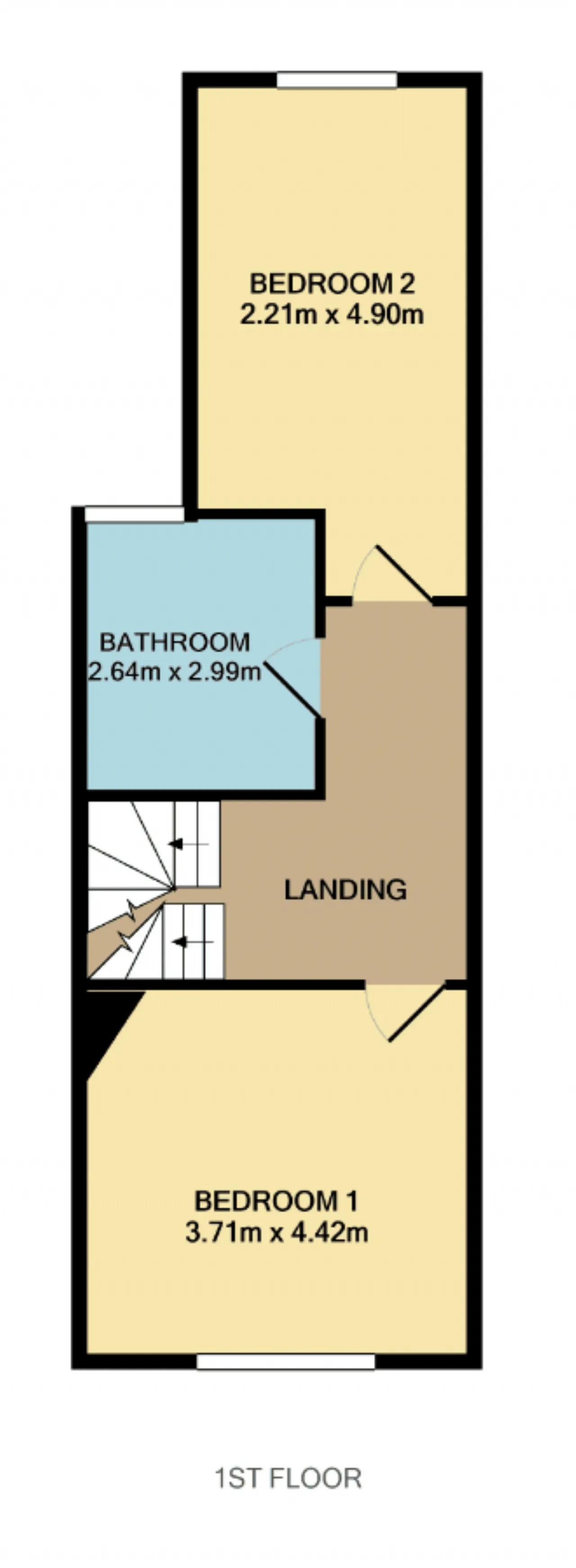 Bedroom 2 2.21m x 4.90m Double bedroom to the rear, carpet floor