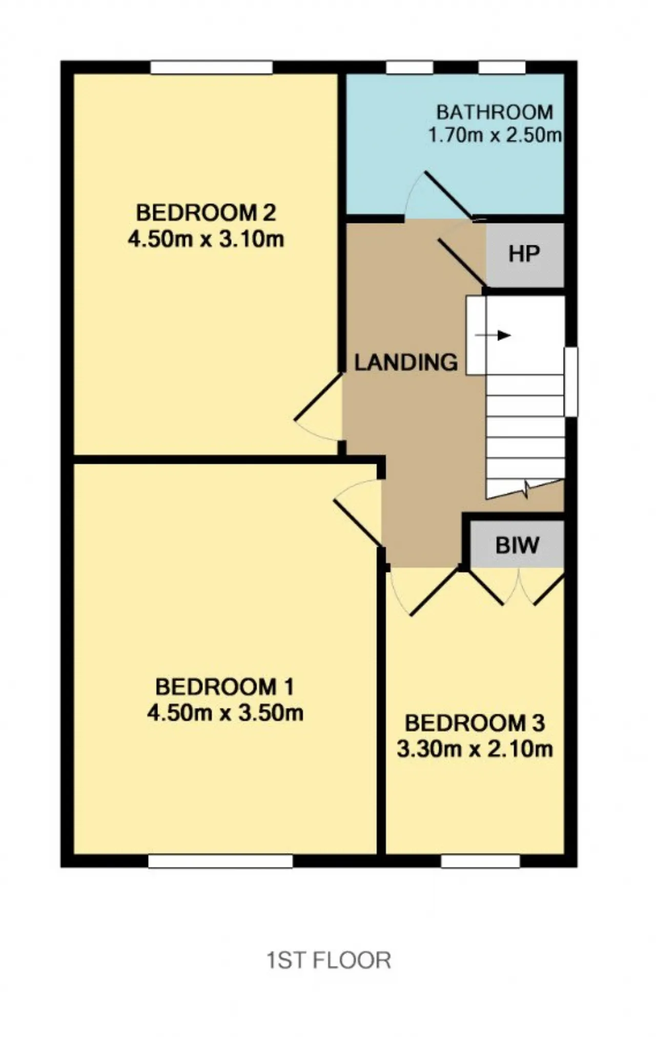 Bedroom 1 4.5m x 3.5m Double room to the front with built in wardrobes.