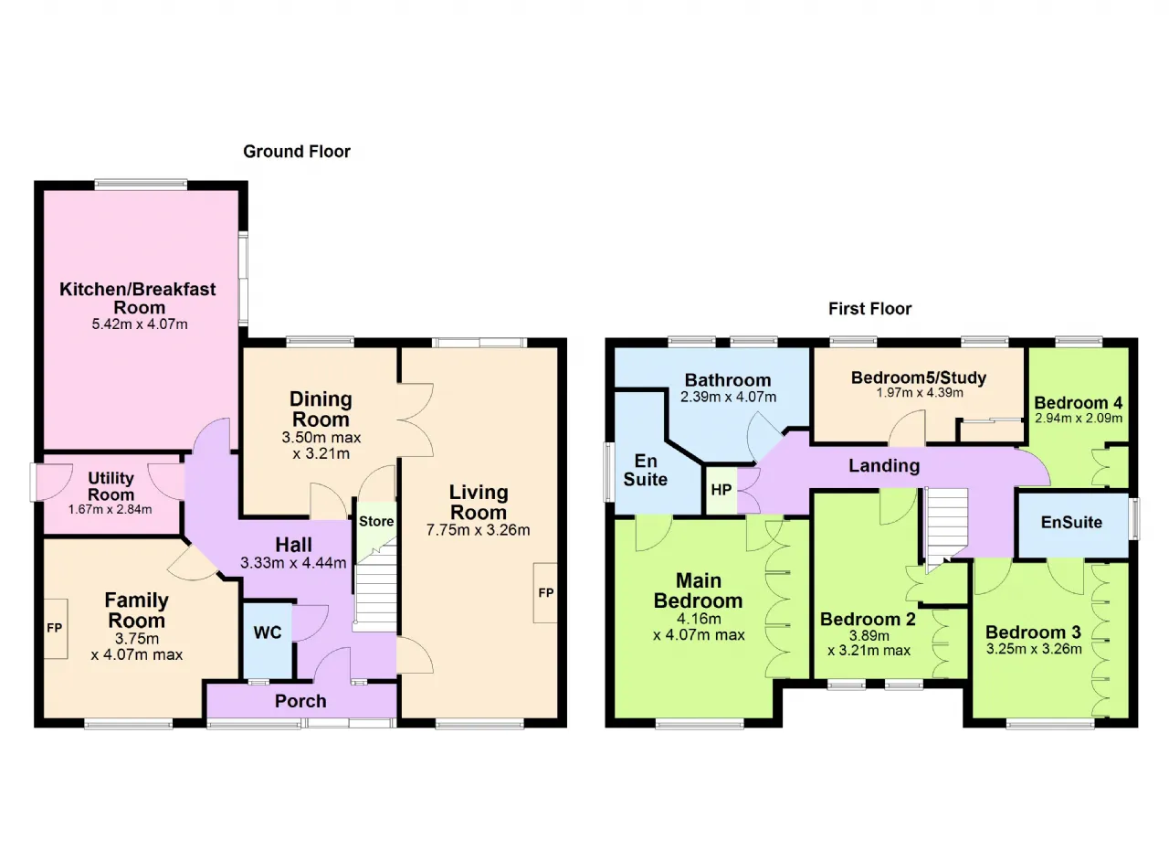 Extending to approximately 1850sq.ft. it has an excellent mix of living and sleeping accommodation ensuring all of a family's needs are met. Downstairs the accommodation comprises an entrance hall with guest w.c., a living room, with a feature fireplace, that stretches the entire depth of the property and gives way via double doors through to the dining room that is also accessed from the hallway. There is a large family room with a further feature fireplace and the kitchen/dining room with feature range cooker is an incredibly inviting space and conjures up visions of memorable family gatherings. There is a separate utility alongside it. On the first floor there are five bedrooms, two of which have en-suite shower rooms and a family bathroom completes the accommodation.