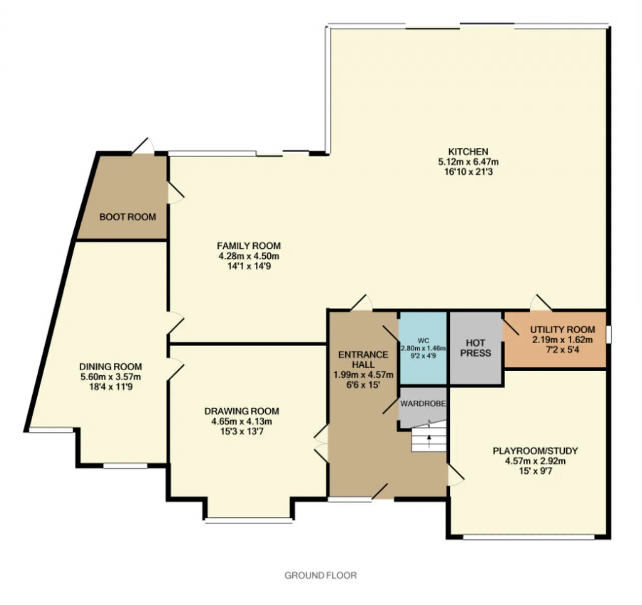 Family Room 4.28m x 4.50m Floor to ceiling windows, with sky lights ensuring maximum natural light