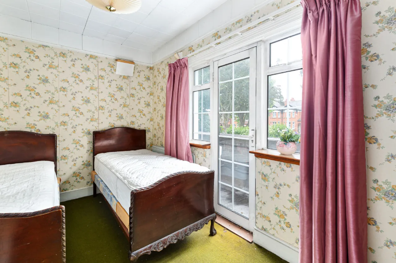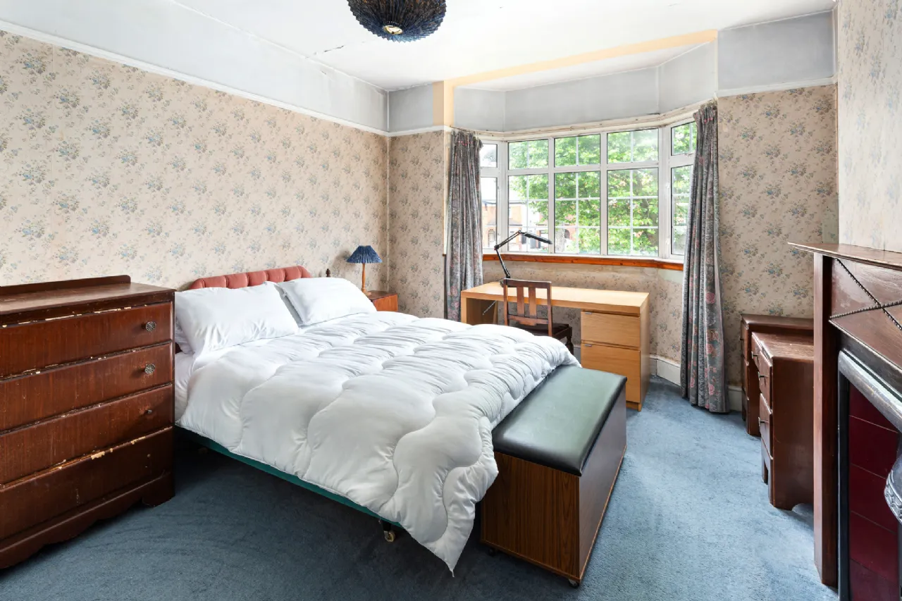 Bedroom 2 3.6m x 4m Located at the rear of the home, this peaceful double bedroom features carpet flooring, picture rails, and a traditional fireplace, all overlooking the mature garden beyond.