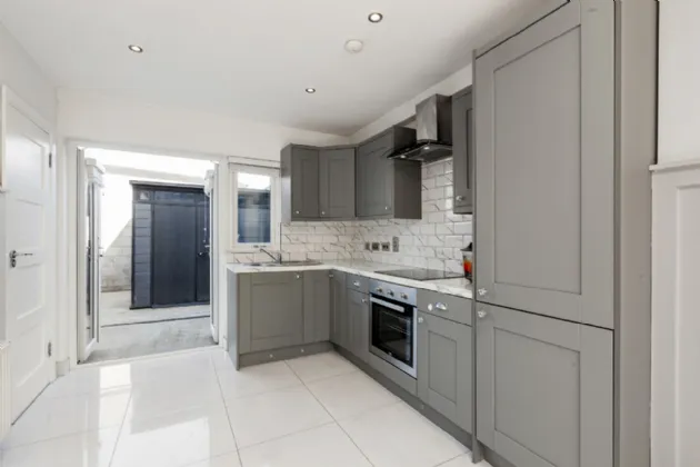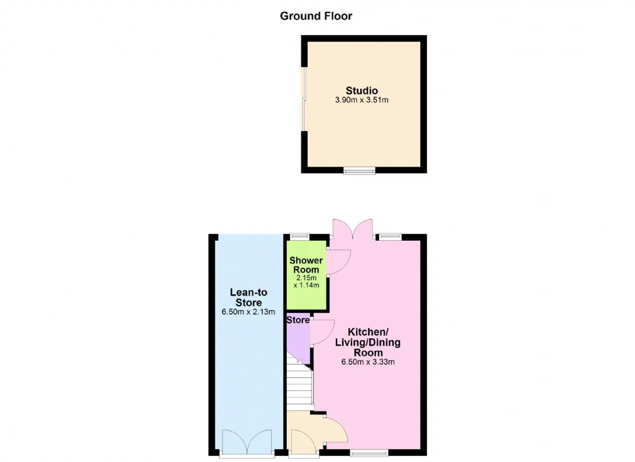 Studio 3.90m x3.51m The studio is finished with sleek porcelain tiles and recessed lighting, creating a bright and contemporary space. It is fully wired and plumbed, offering excellent versatility as a home office, guest space or creative studio.
