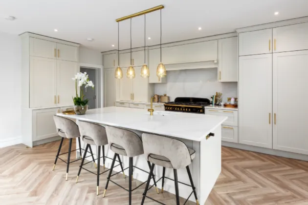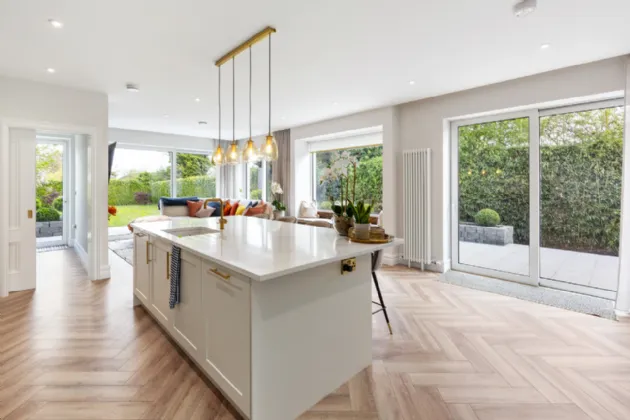 The accommodation comprises a porch with pretty original tiles and hall door with stained glass insets leading to a large entrance hallway with oak flooring, wood paneling, ceiling covings and a useful guest w.c. The reception rooms are interconnecting with the living room to the front a beautiful room with large bay window, limestone fireplace and oak flooring, pocket doors lead to the dining room which has a matching limestone fireplace and oak flooring. Both rooms retain their original covings. Double doors lead from the dining room to the kitchen. The kitchen/ living/ dining area is stunning with a great range of high-quality floor and wall units with integrated appliances, a large island which doubles as a breakfast bar, there is space for a dining table and a seating area which overlooks the rear garden. Several sliding doors and roof lights and a picture window flood the room with light. The utility room has plumbing for a washing machine and dryer, a sink and a great range of floor and wall units. Upstairs there are three generous sized double bedrooms all with wooden flooring. A luxuriously appointed family bathroom completes the accommodation.