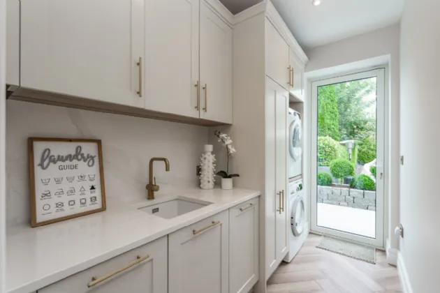 Utility Room 3m x 1.6m Fitted with a range of floor and wall units, sink and plumbing for a washing machine and dryer.