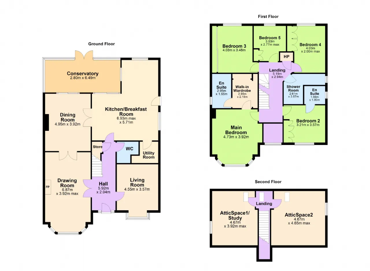 Dining Room Sliding doors to the conservatory. Double glazed doors to the: