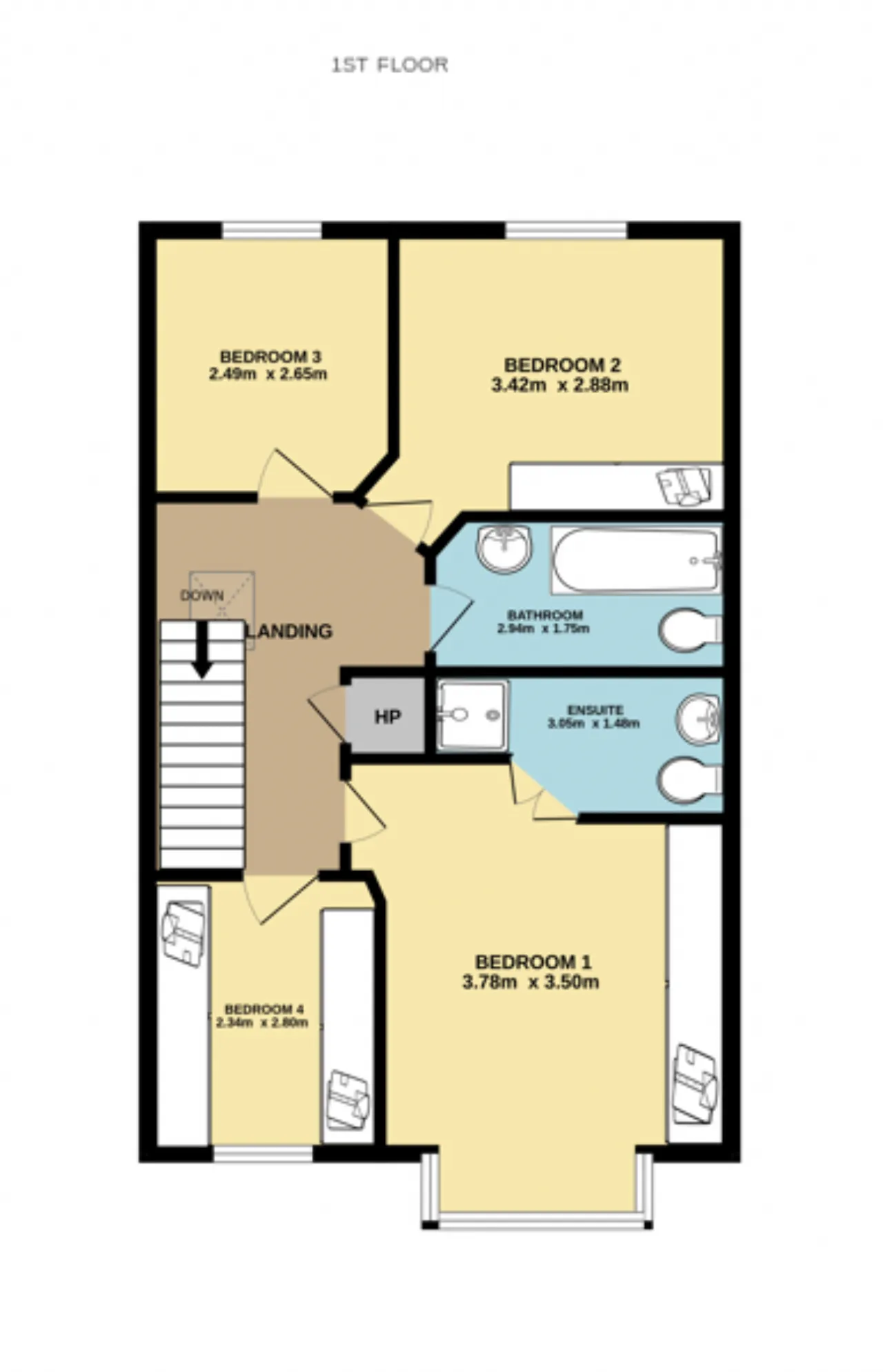 Bedroom 1 A beautifully decorated primary bedroom with laminate, timber flooring and fitted wardrobes, providing ample storage. This large, double bedroom is situated to the front of the house, boasting a beautiful bay window with private views over the surrounding area.