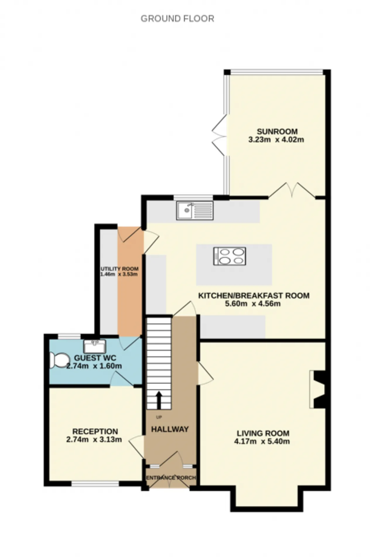 Reception Room Situated to the front of the house, with laminate, timber flooring. Currently used as an office and would also make an ideal living room, playroom or bedroom, with the advantage of having access to the downstairs, guest wc, which is plumbed to include a shower if desired.