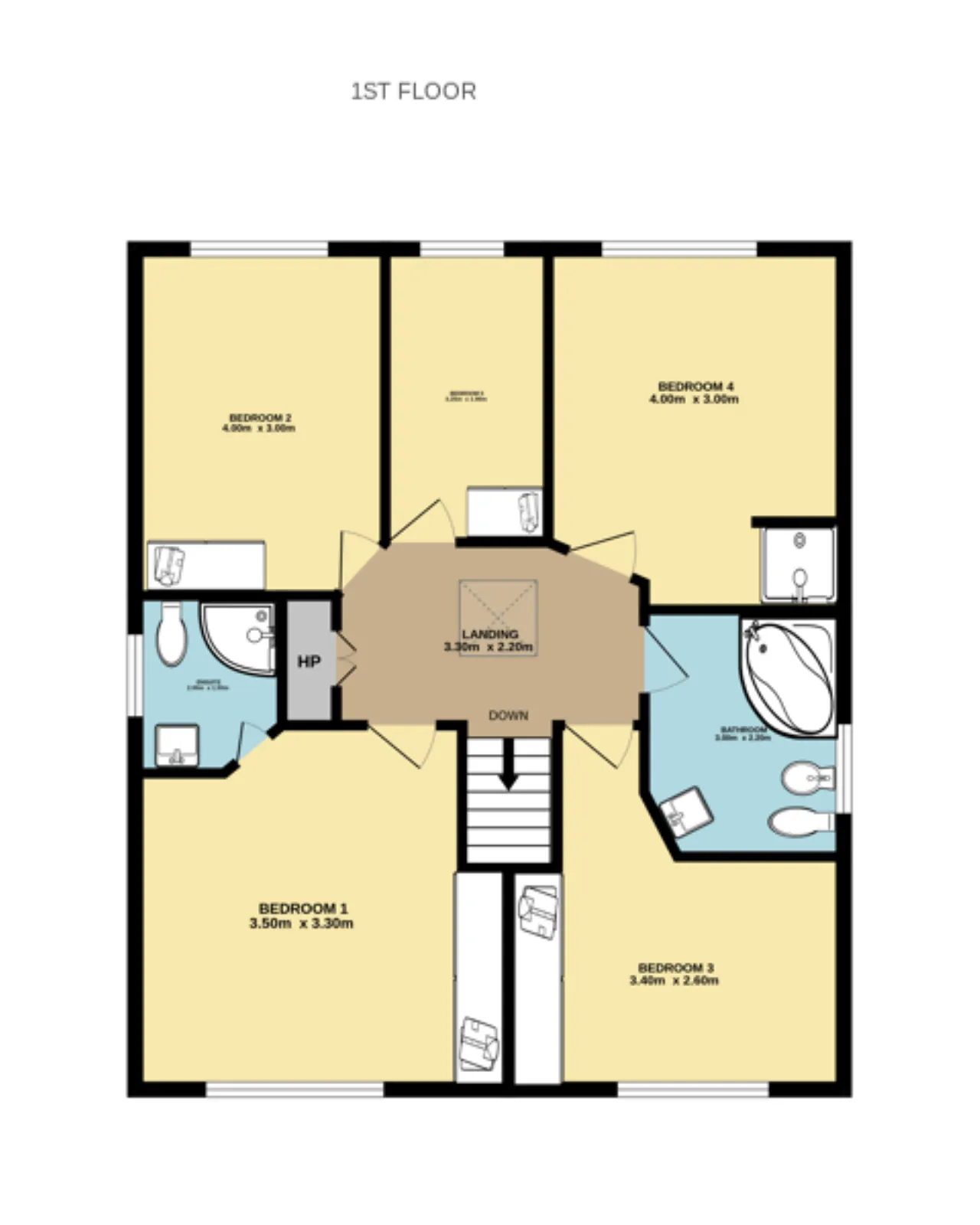 Bedroom 4 3.4m x 2.6m Double bedroom with built-in wardrobes.