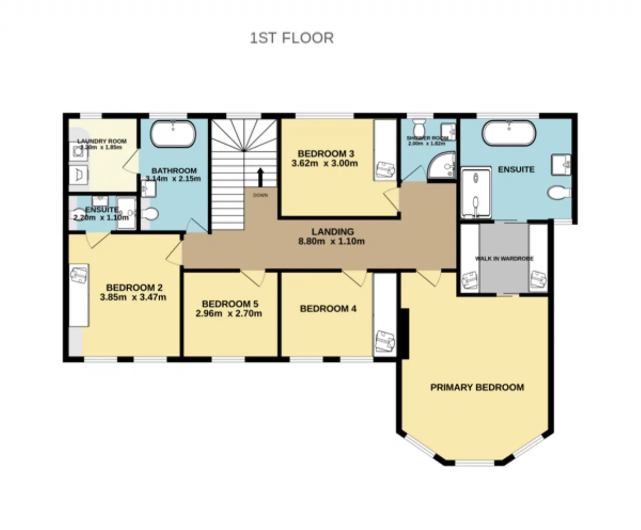 Landing 8.8m x 1.1m Spacious landing with access hatch to attic. Oak timber flooring and recessed lighting.
