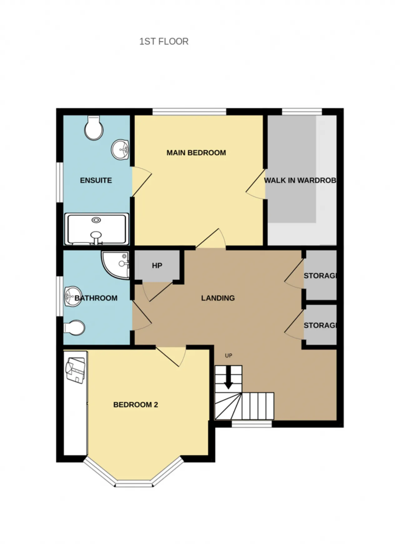 Bedroom 2 3.8m x 3.4m Large double bedroom to the front of the property with feature Bay window. Wall to wall fitted wardrobes.