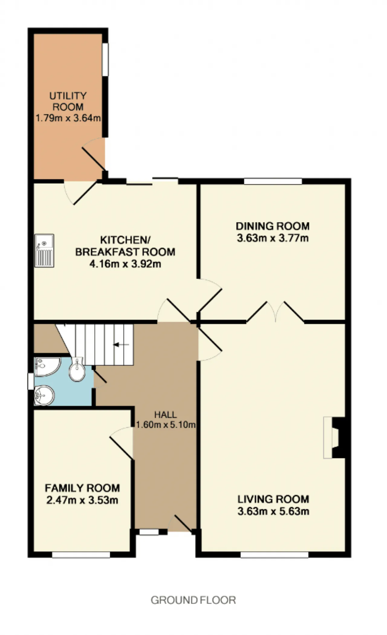 Family Room 3.53m x 2.47m This invaluable third reception room is suited to any number of uses, such as a playroom, home office or tv room. It has access to the shower room