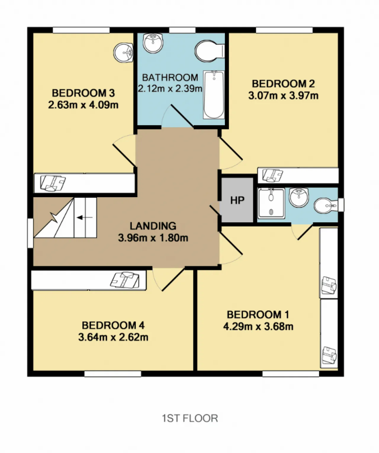 Bedroom 4 3.64m x 2.62m Is a roomy single to the front with upgraded build in wardrobes and natural varnished floors. A fold away stairs leads to the family room