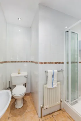 Shower Room 1.8m x 0.7m Fully tiled shower room with wc and wash hand basin.
