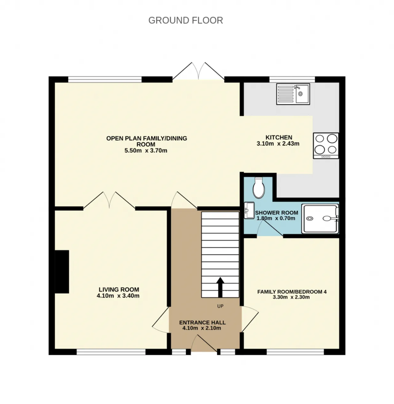 Family Room/Bedroom 4 3.3m x 2.3m Versatile room that could be used as an en-suite bedroom, study, playroom etc. Laminate timber flooring.