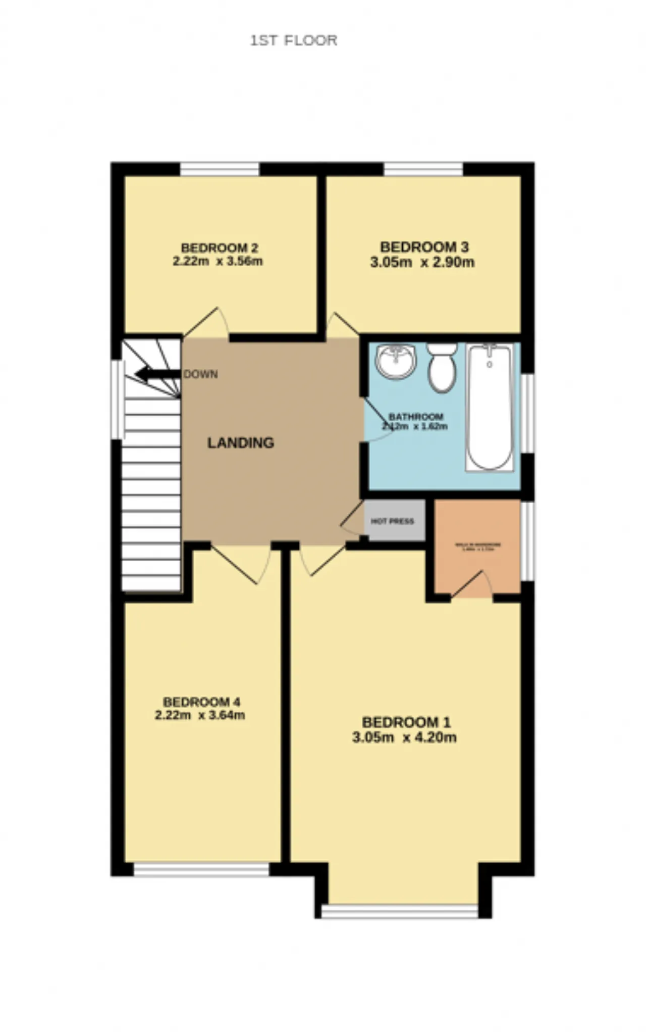 Landing With timber flooring that has been recently sanded and varnished and hotpress