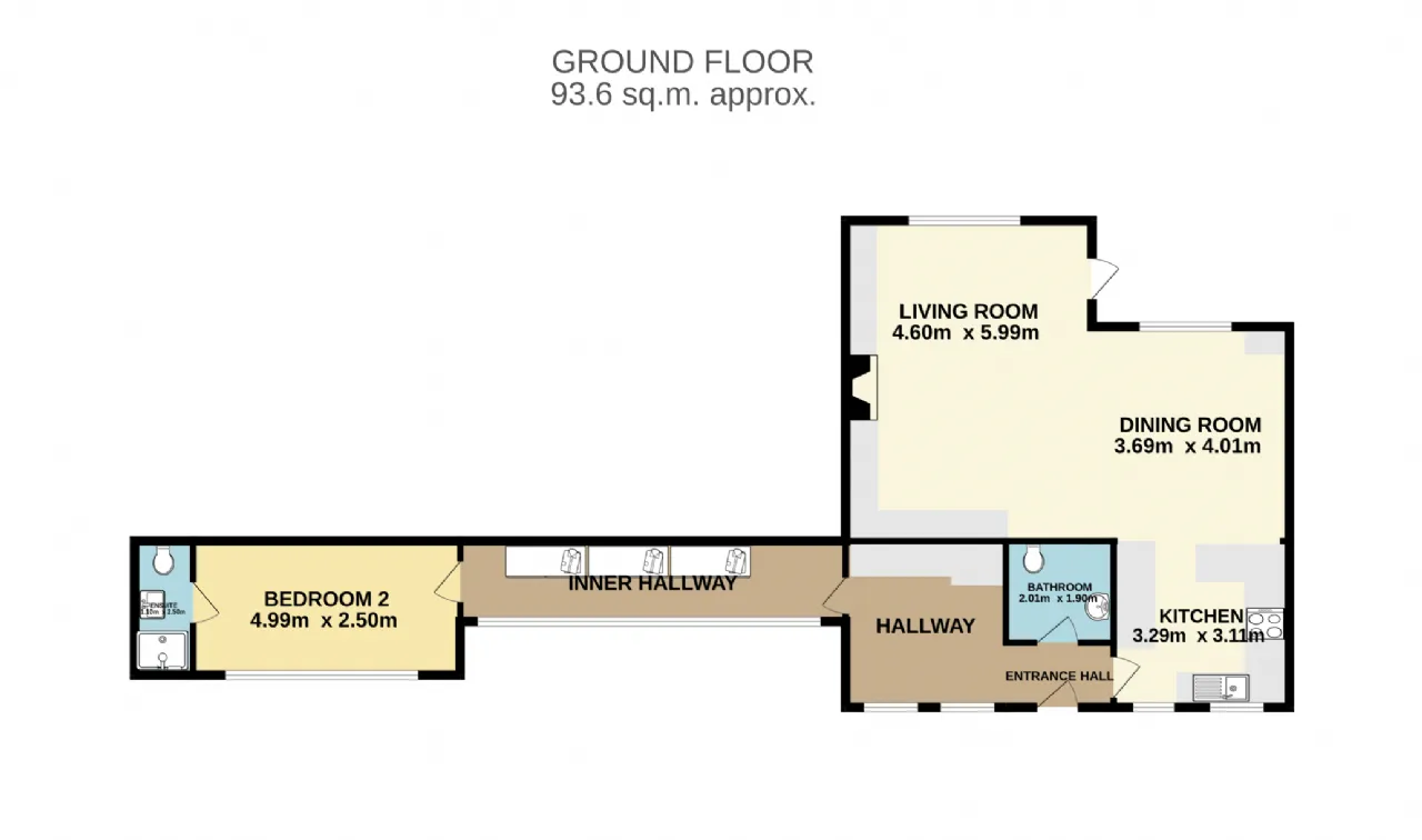 Inner Hallway 7.2m x 1.5m Connecting glazed hallway to the downstairs bedroom. Fitted with storage closets.