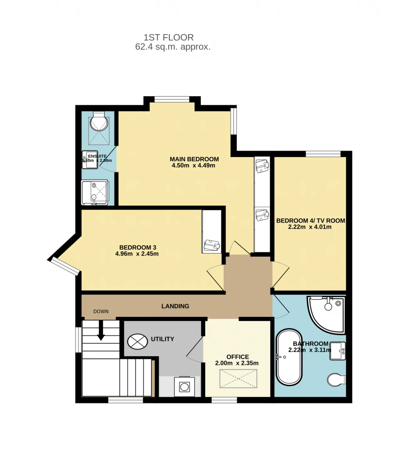 Office 2.38m x 2m A practical work from home or study space off the landing, Velux window.