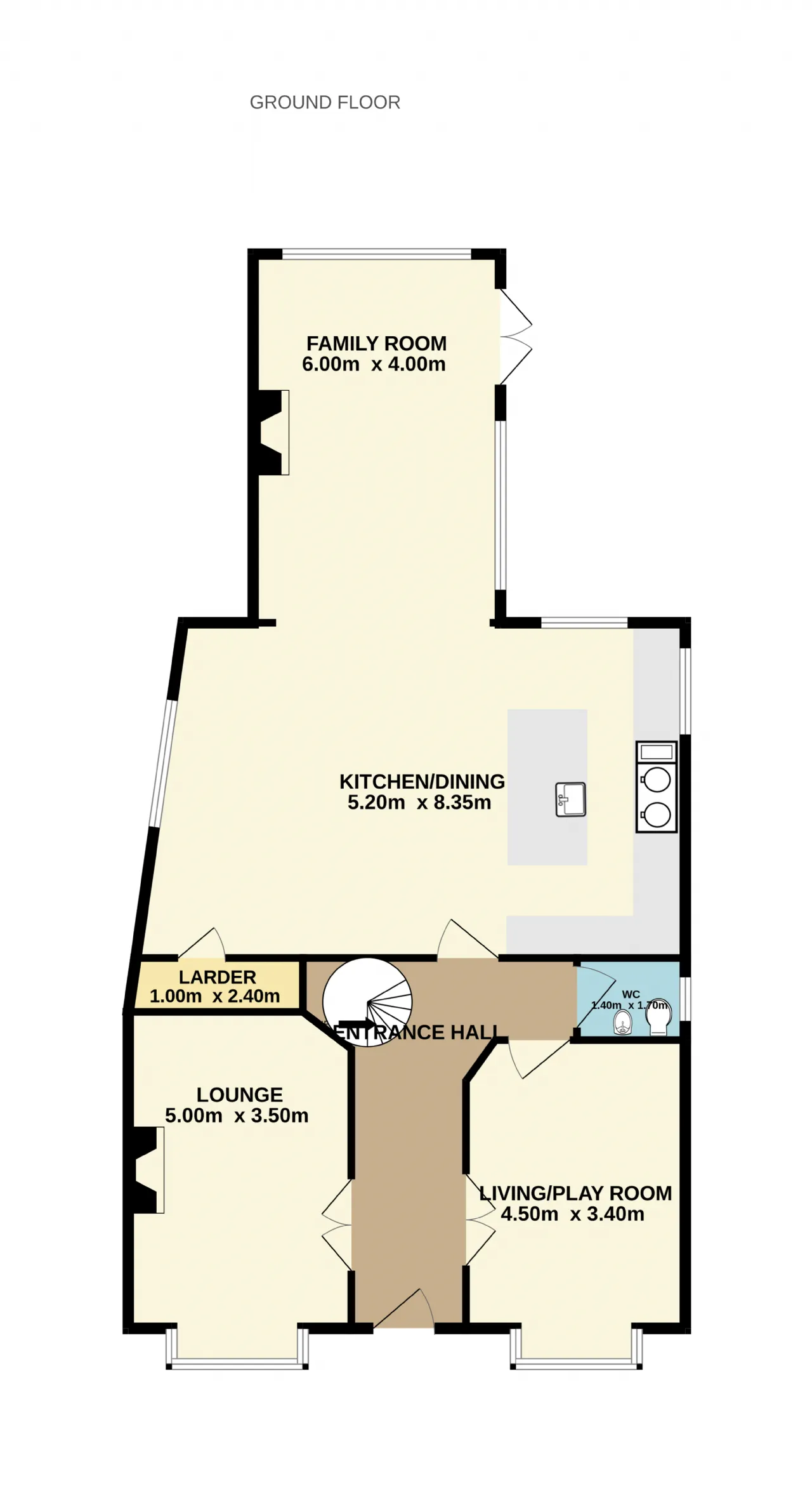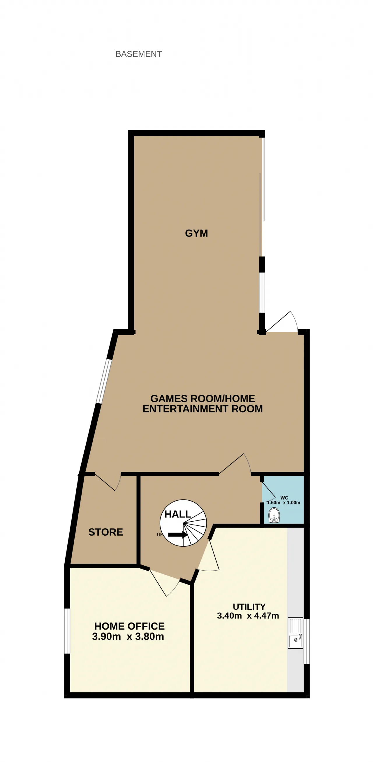 Guest W.C. 1.4 x 1.7 Located off the hallway with wash hand basin and w.c. Window to side.