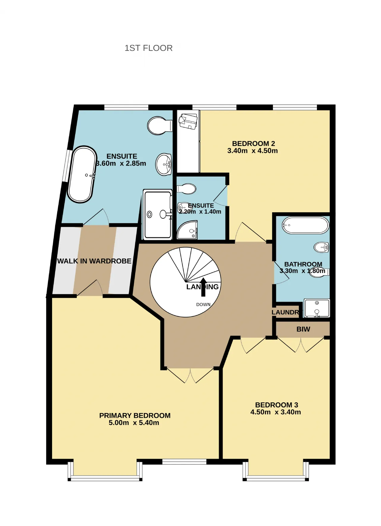 En-suite Bathroom 3.6 x 3.3 Large bright en-suite, with Italian marble tiling, free standing bath, separate double shower cubicle with attractive mosaic style brown and cream tiles, wash hand basin, w.c. and heated towel rail