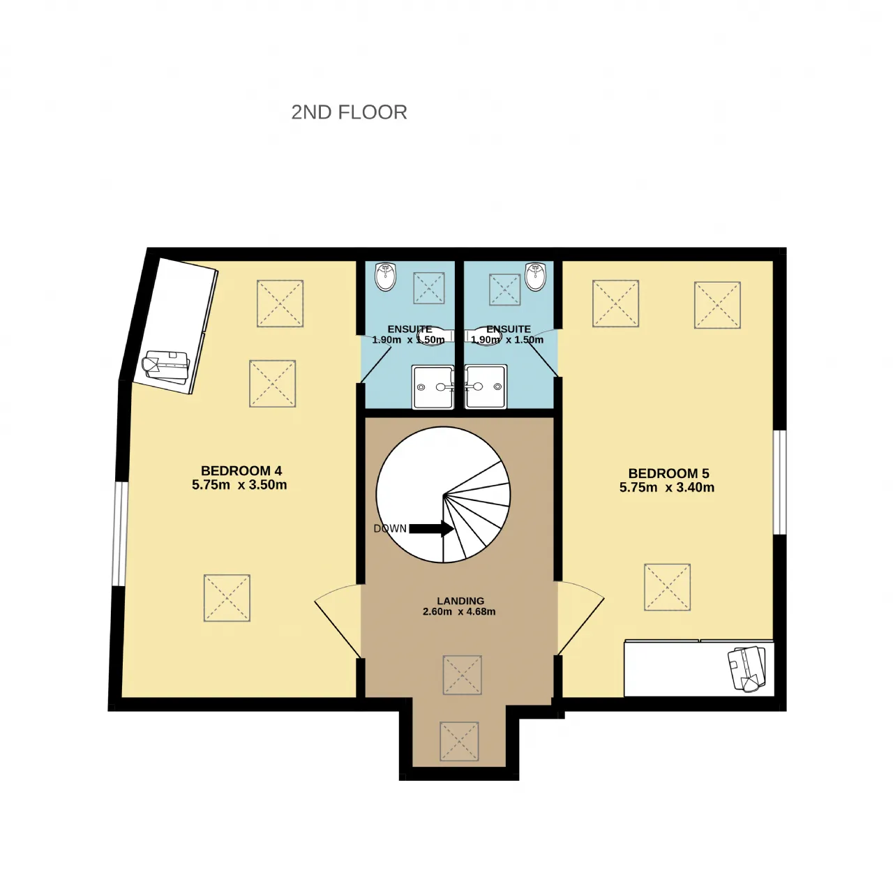 Bedroom 5 5.7 x 3.4 A light filled room with 3 Velux windows and built in wardrobes.