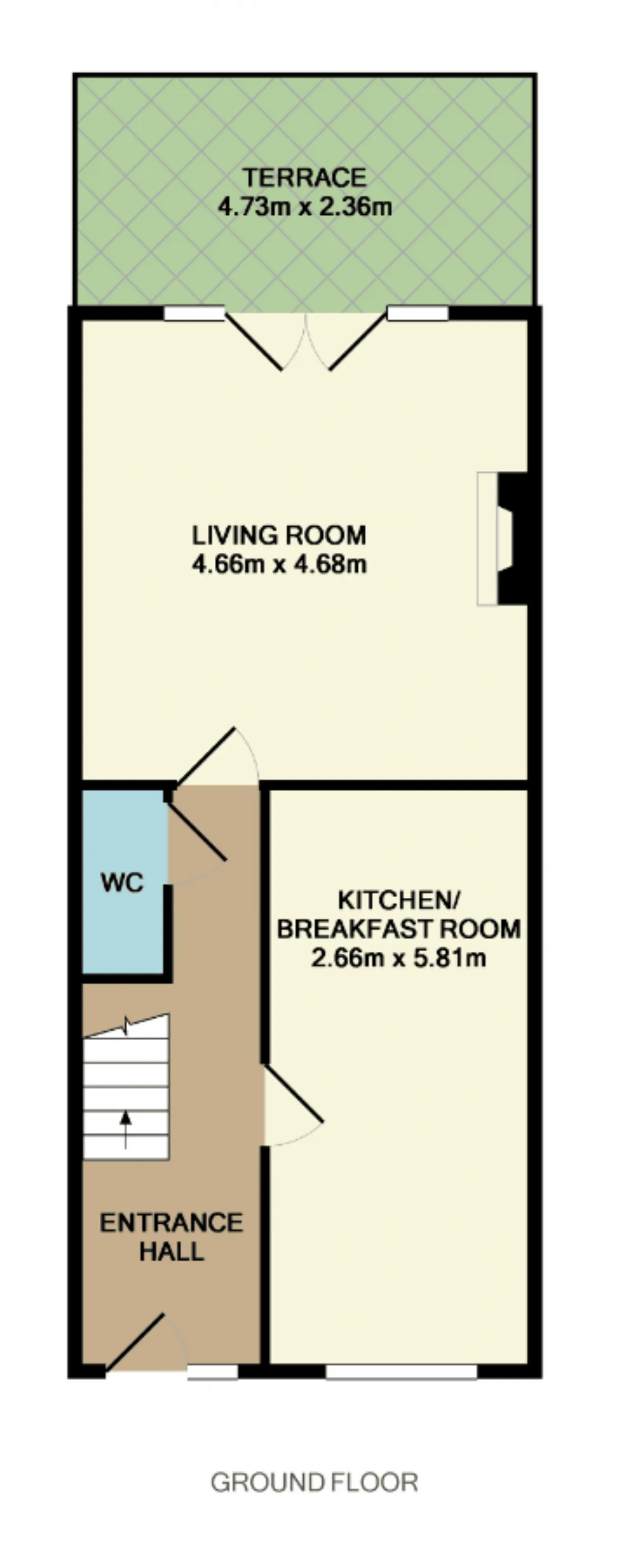 WC 1.9m x 0.8m Located underneath the stairs, 2 x piece suite with wc and whb, tiled floor partly tiled floor.