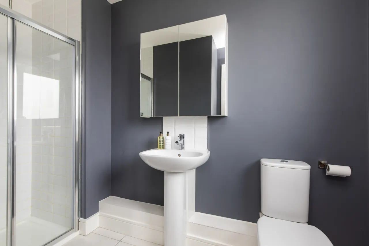 En-Suite 1.76m x 1.35m A good-sized, fully tiled ensuite with a shower, wc, wash hand basin and heated towel rail.