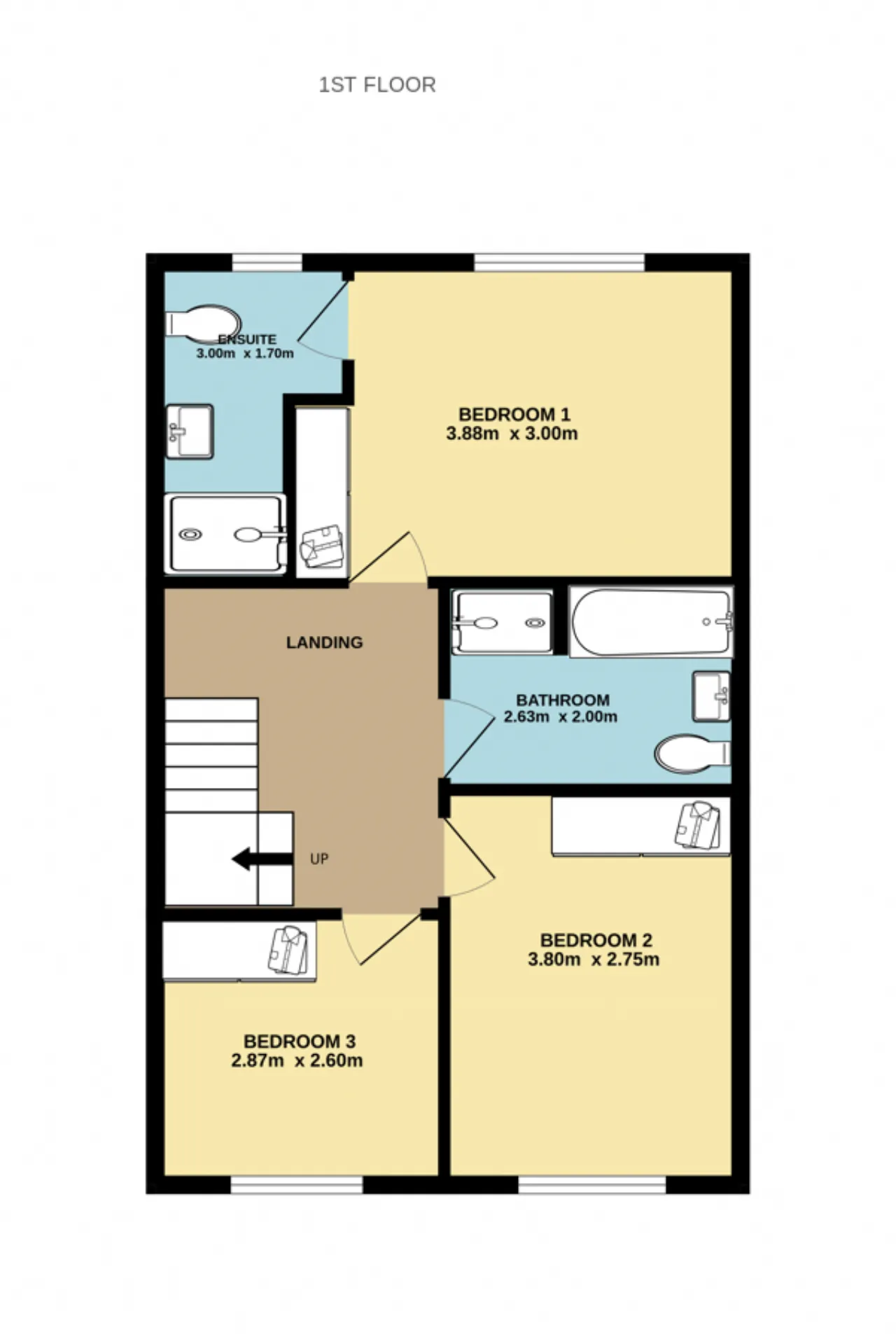 Bedroom 2 3.8m x 2.75m A generous, second double bedroom with laminate flooring and fitted wardrobes.