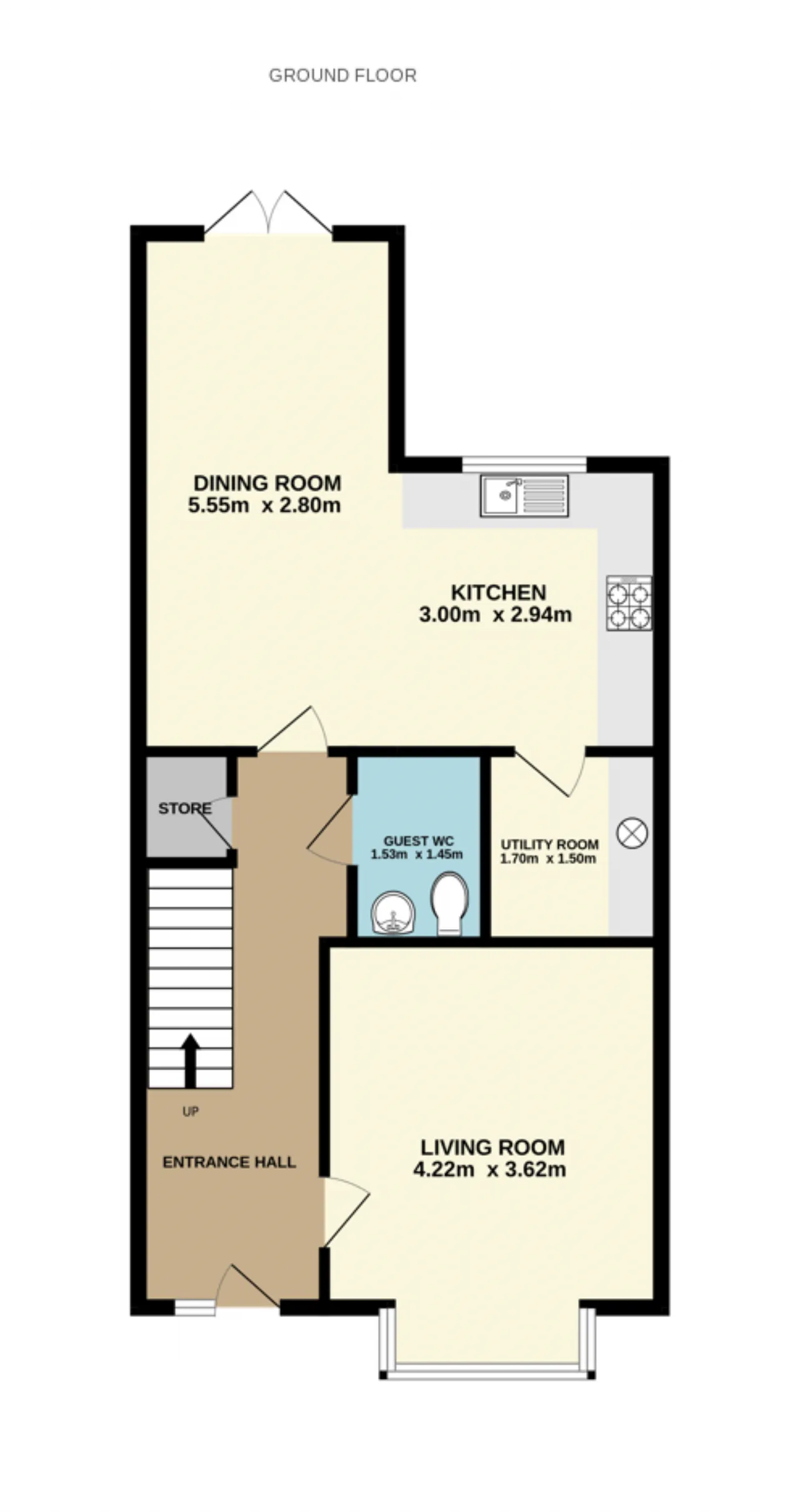 Guest WC 1.53m x 1.43m Located just off the hallway, with tiled flooring. Comprises of a wc and wash hand basin.