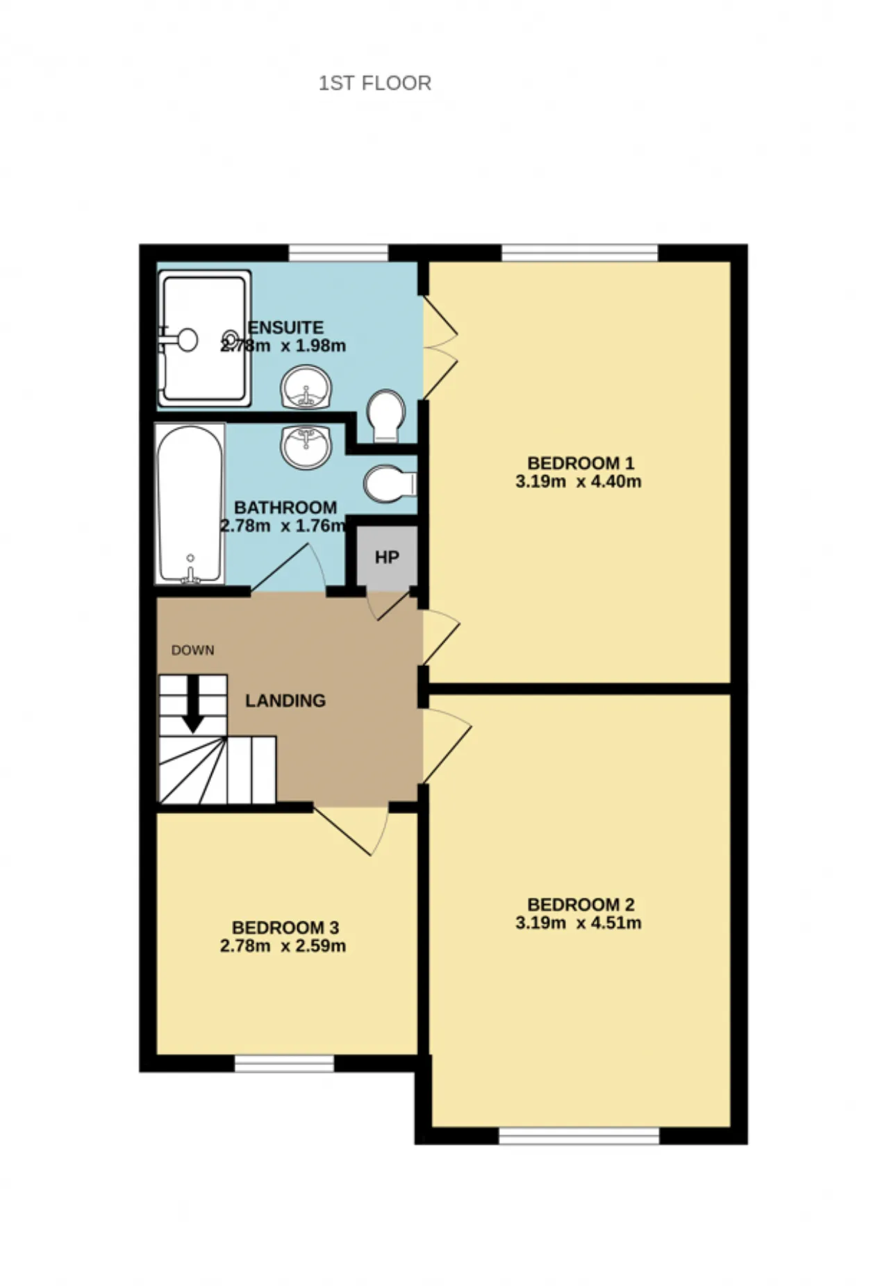 Landing With carpet flooring continuing from the stairs. Holds the hotpress.