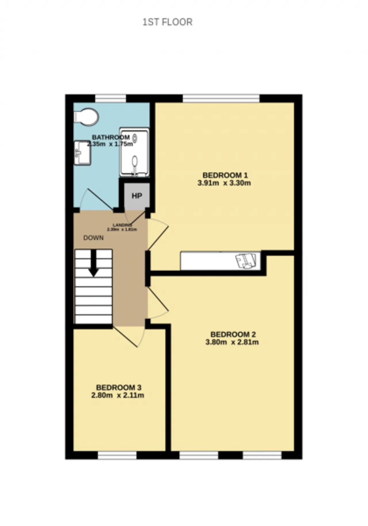 Bedroom 2 A large second double bedroom situated to the front of the house, with carpet flooring.