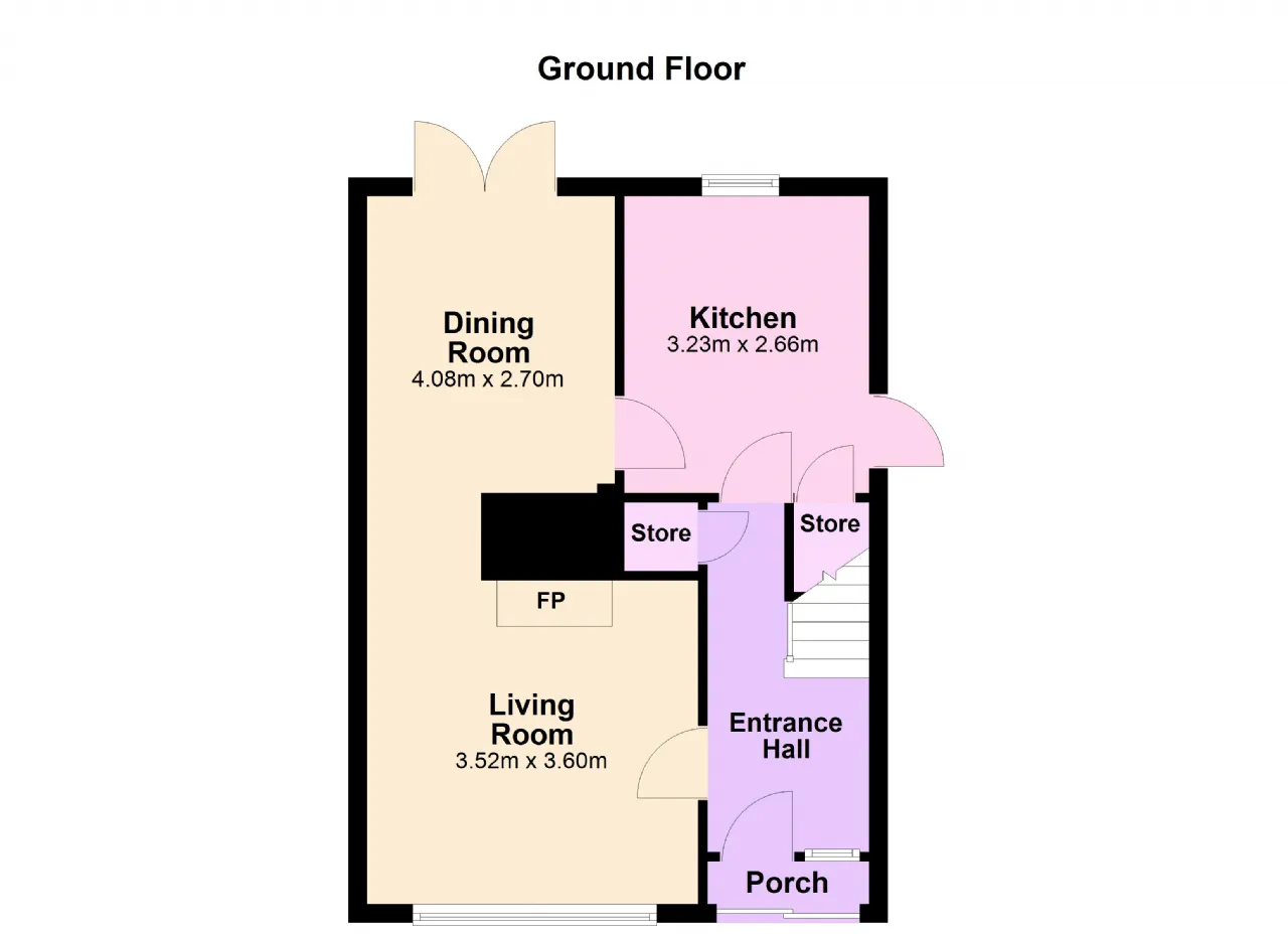 Dining Room 4.08m x 2.70m Comfortable dining area with double doors leading to the rear patio and garden. Door to:
