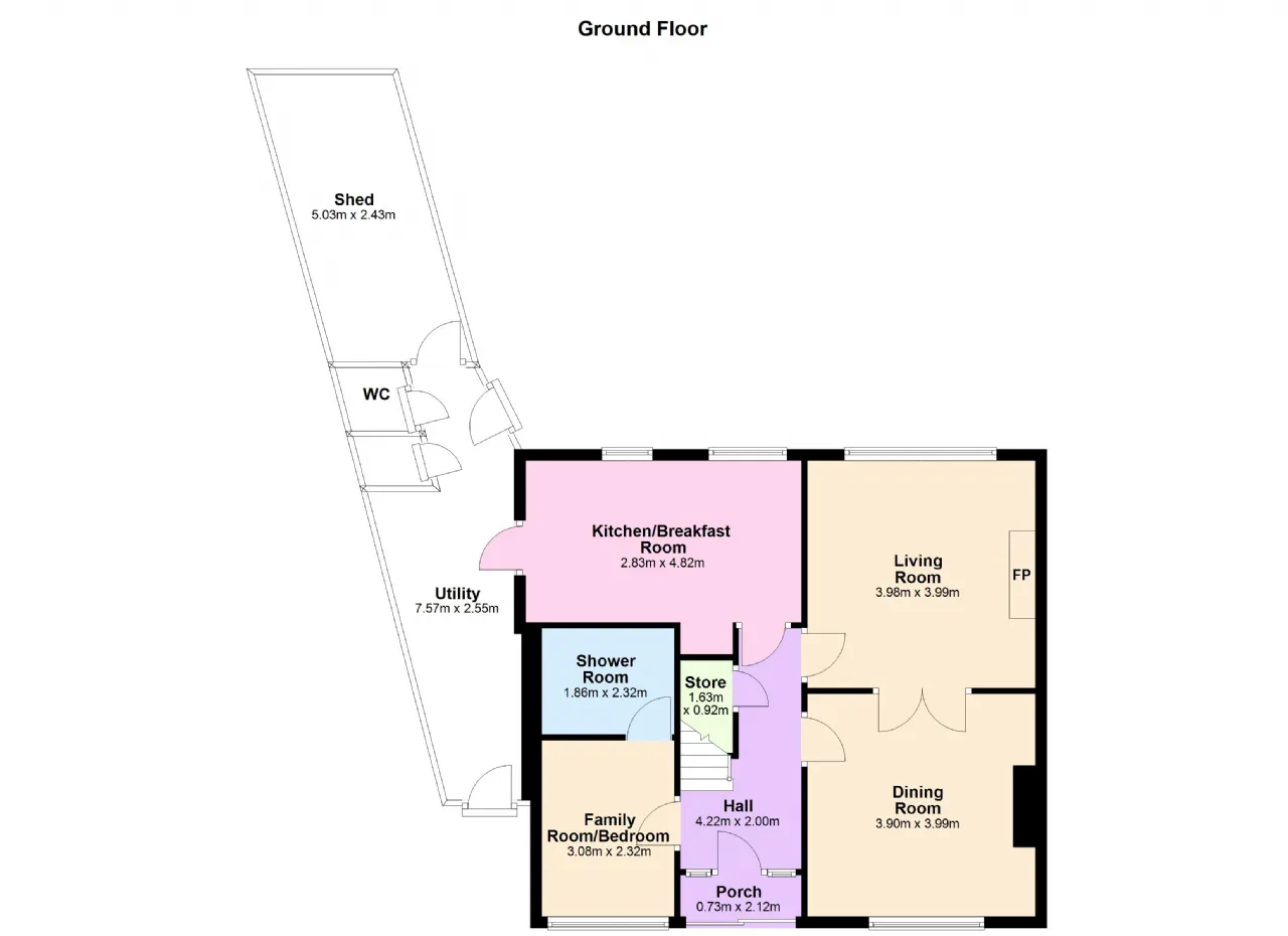 Dining Room 3.90m x 3.99m Feature fireplace with brick surround and marble/slate hearth. Built-in shelving and entertainment unit with storage cupboards. Large window overlooking the magnificent south-facing garden to the rear.