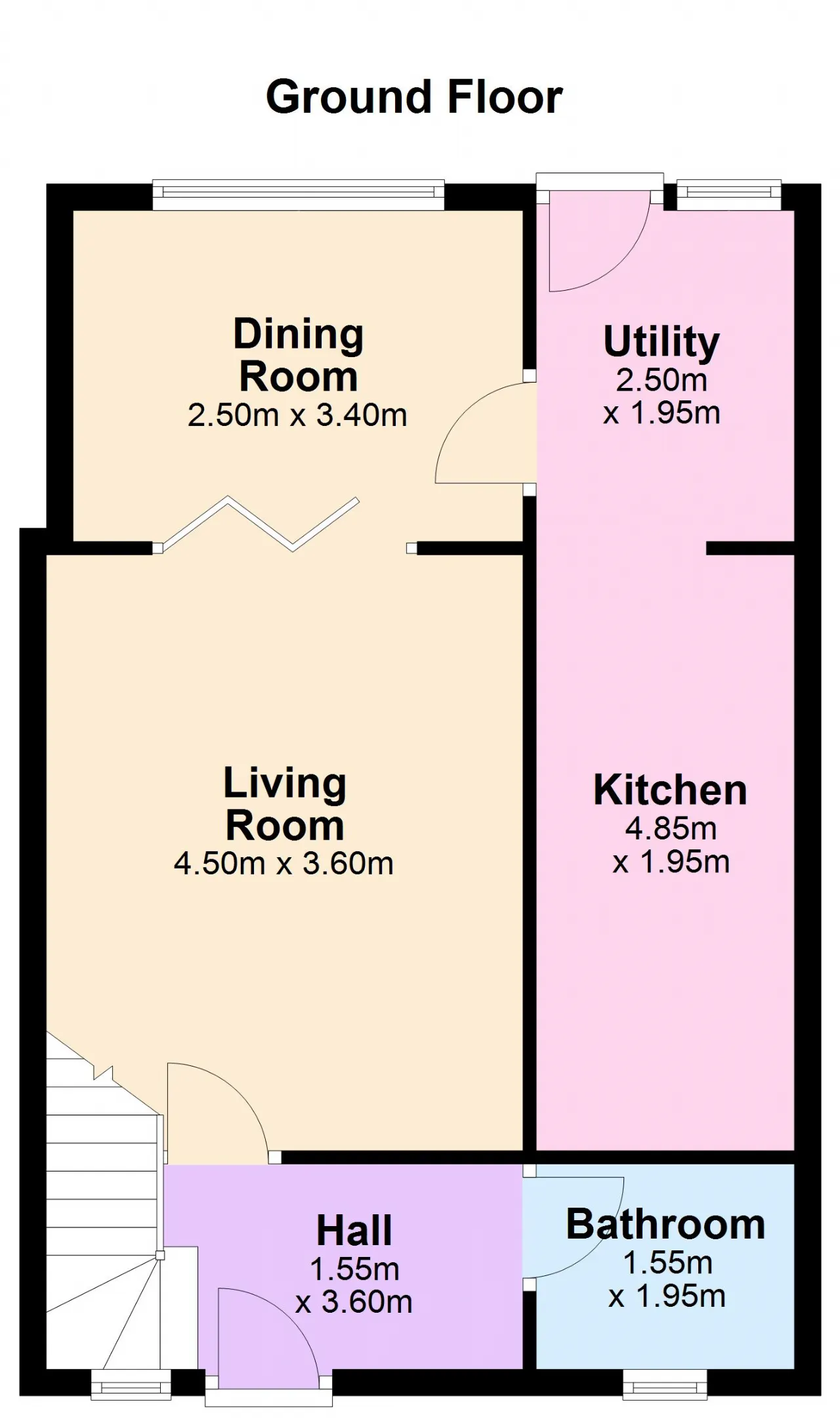 Dining Room 2.50m x 3.40m With window overlooking rear garden and hardwood flooring.