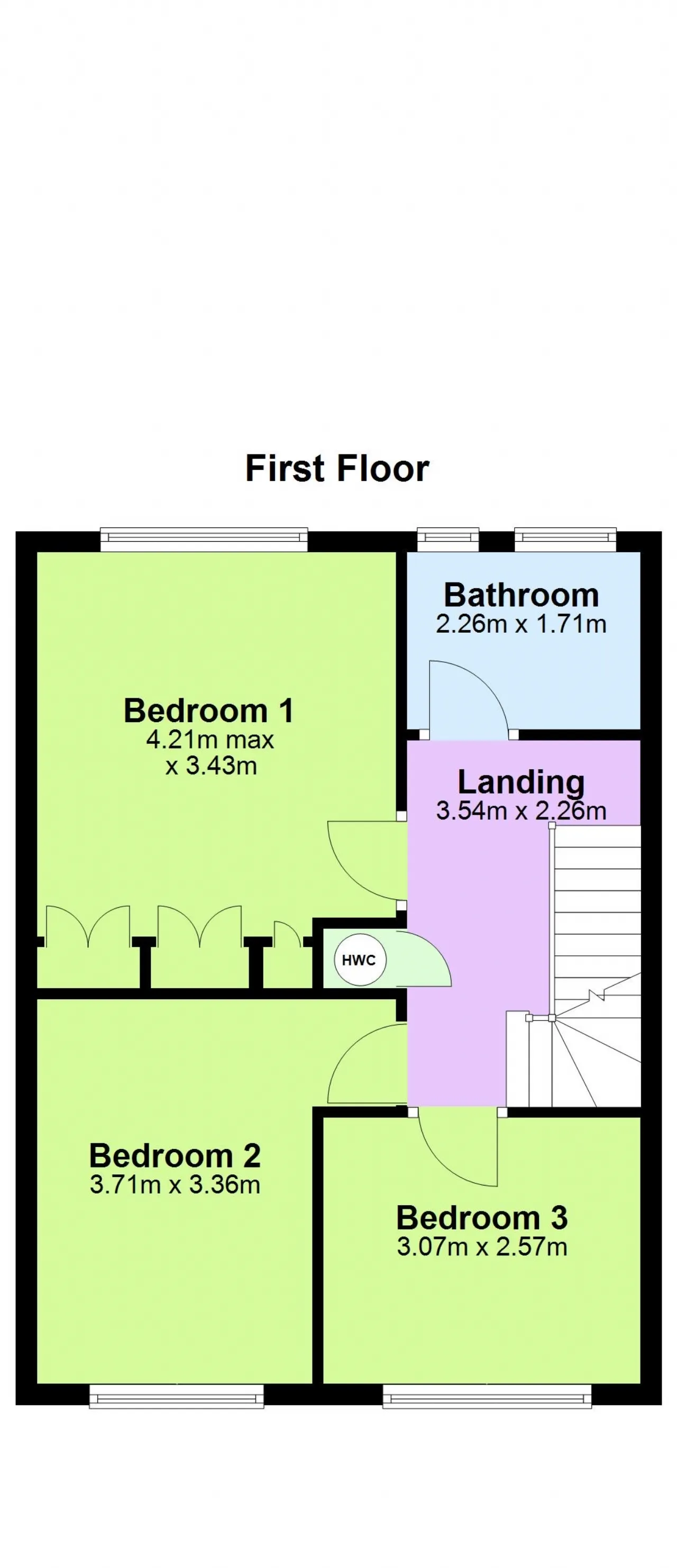 Bedroom 3 3.07m x 2.57m Single bedroom to the front