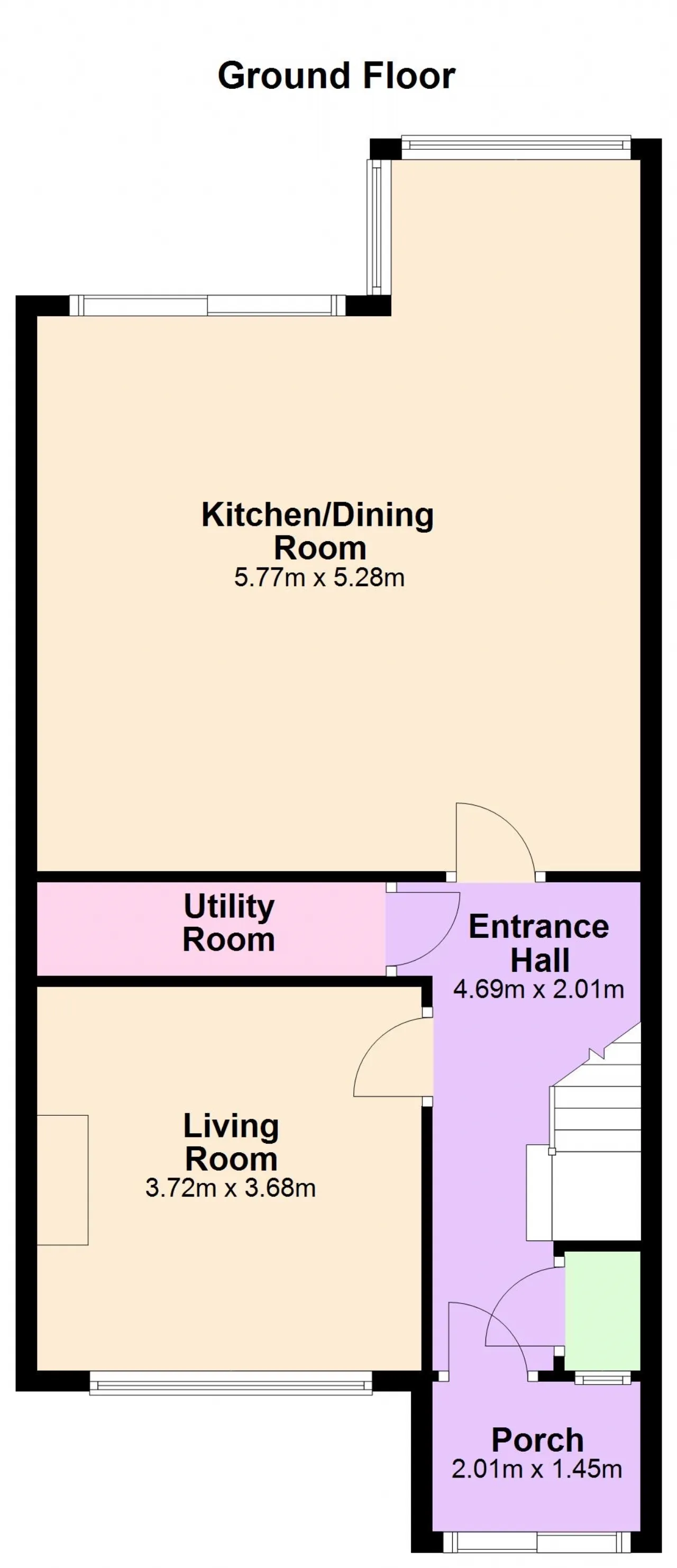 Entrance Hall 4.69m x 2.01m with walk-in cloakroom and under-stairs storage